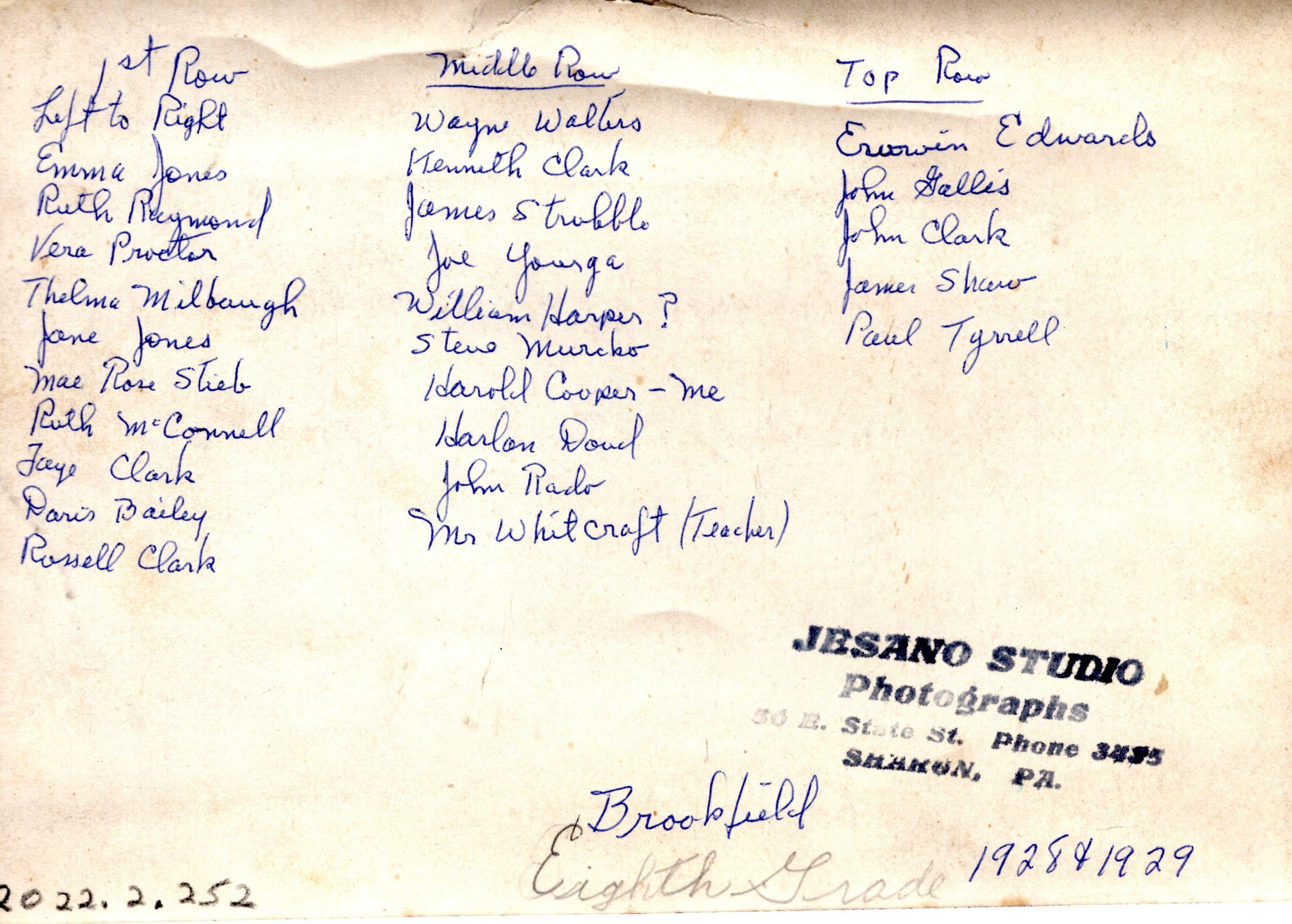 A 1928-1929 class photo of the eighth grade