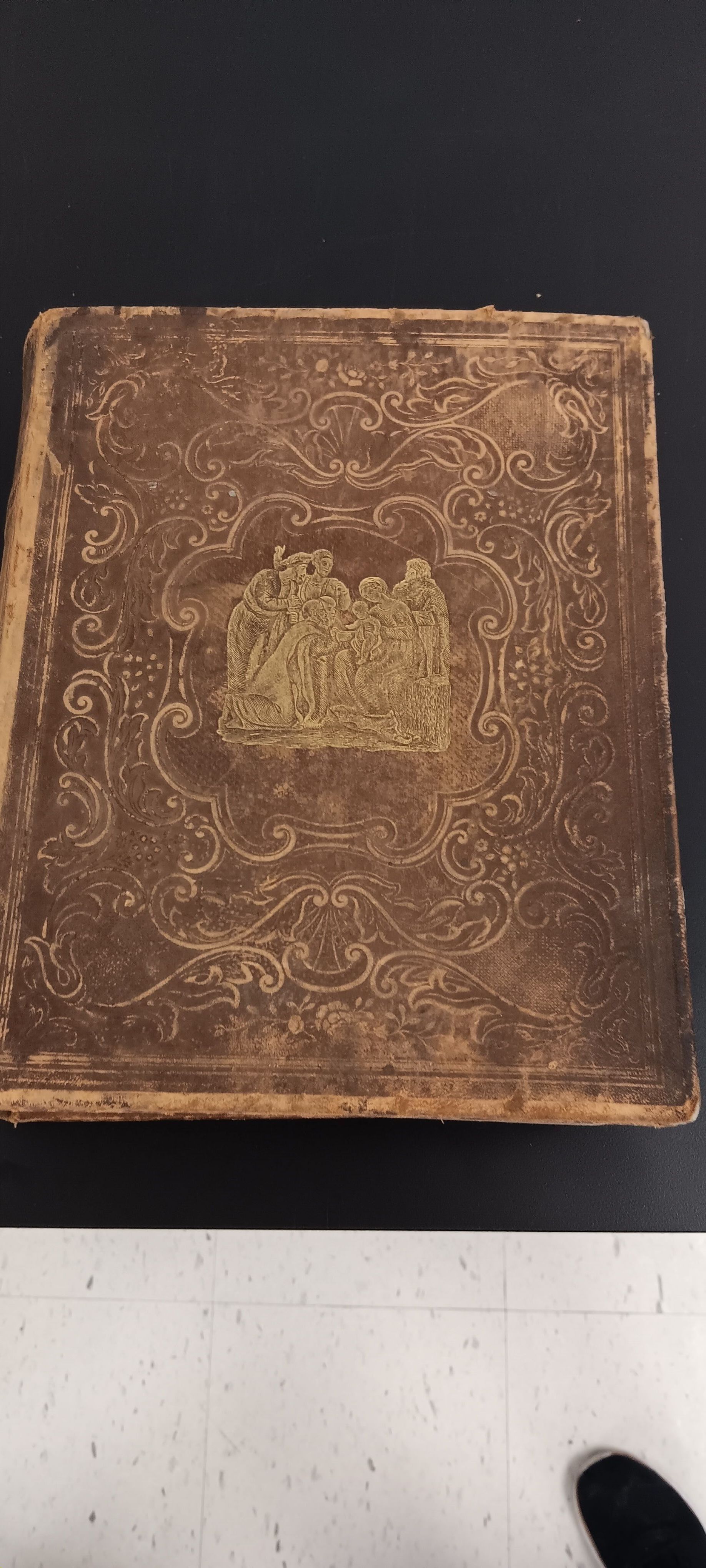 Large German Bible, leather gold foil cover, with illustrations