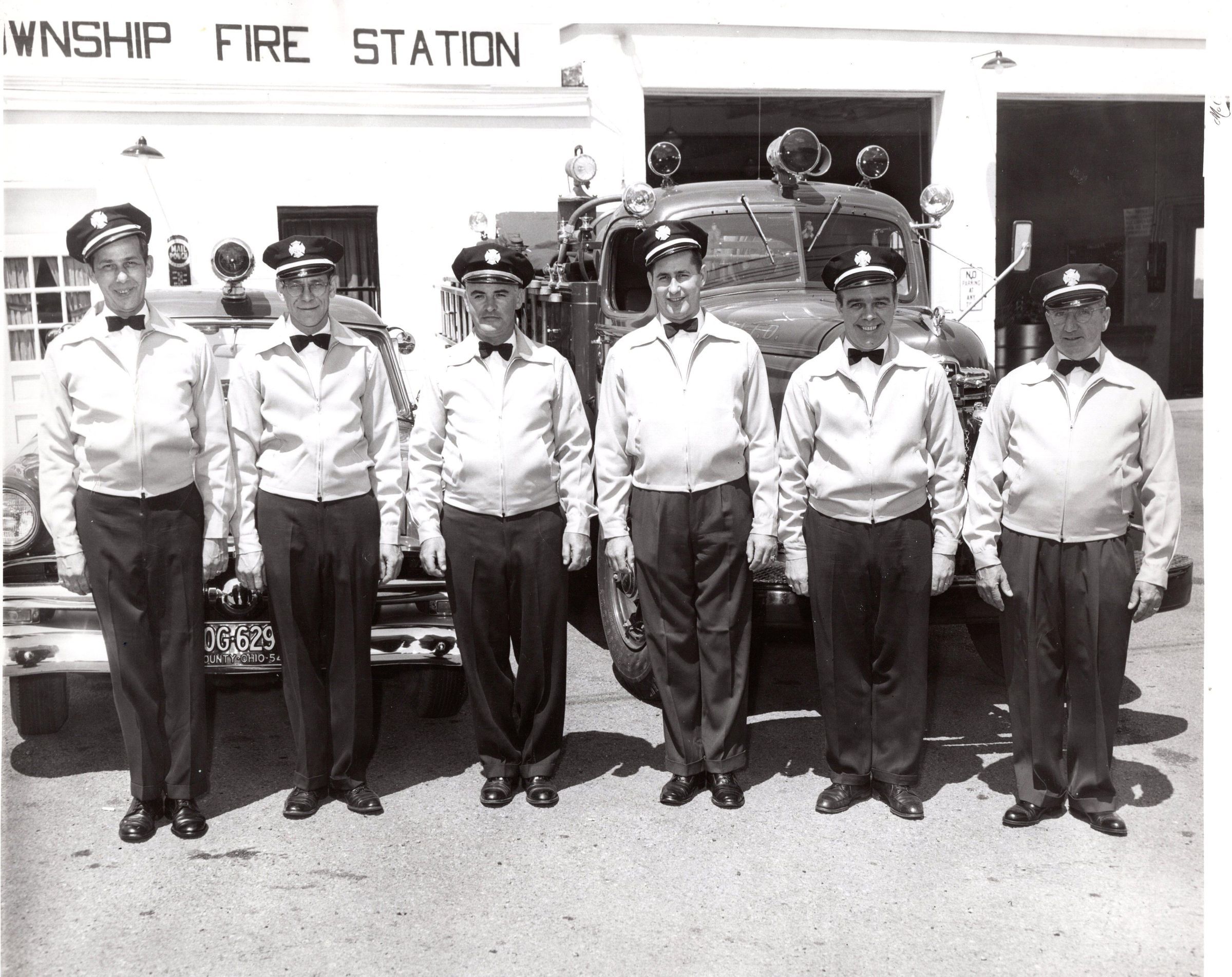 Firefighters Russell Bishop, John (Jack) Powell, Reinold Schultz, unknown, unknown, Leslie (Bud) Lewis.