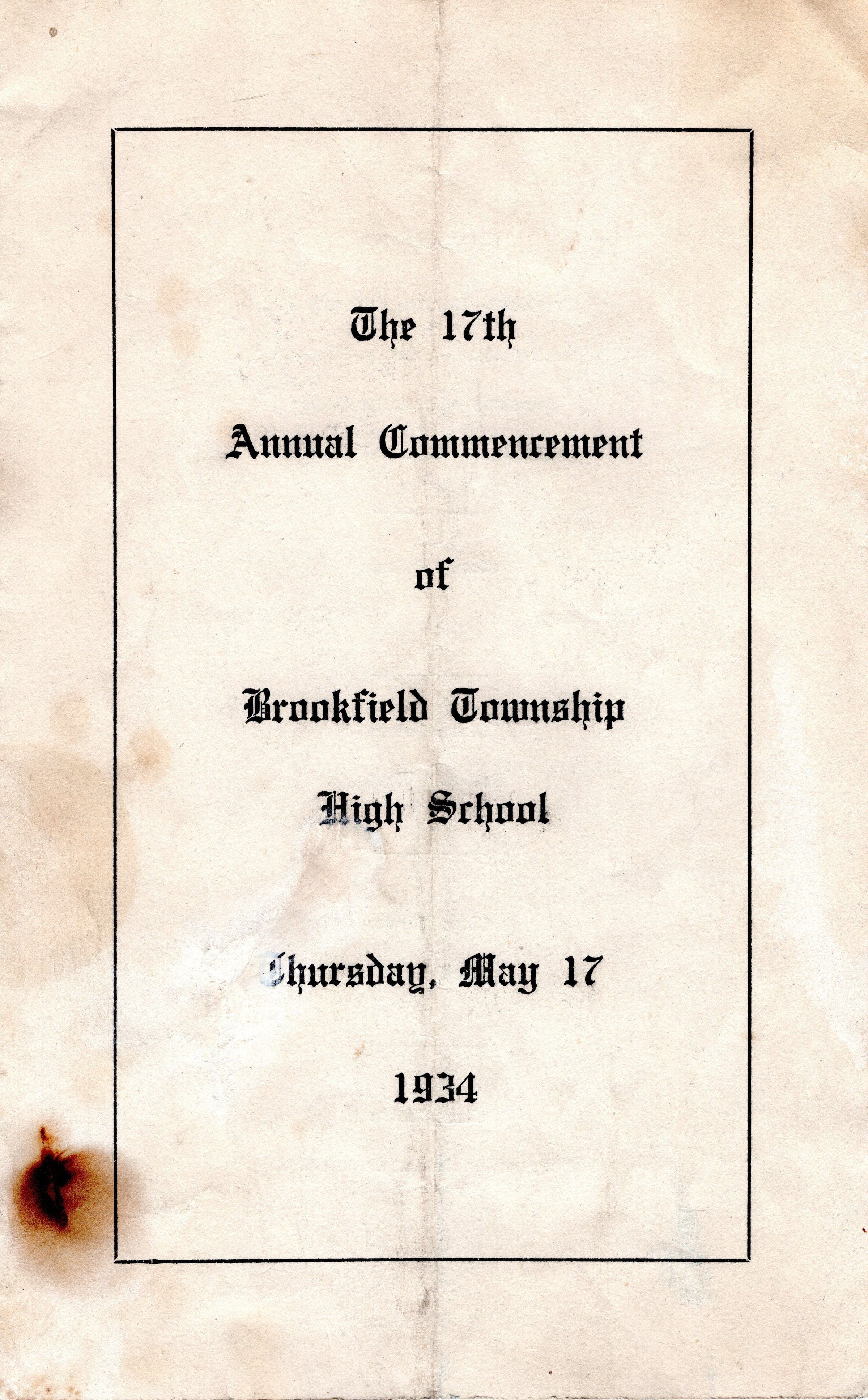 Program for Brookfield High School 17th Annual Commencement. Graduating Class of 1934.
