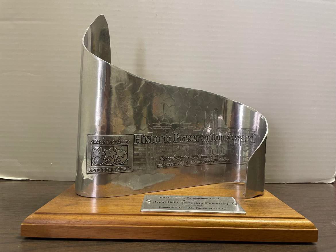 2013 Community Revitalization Award given to Brookfield Township Historical Society for restoration of Brookfield Township Cemetery.