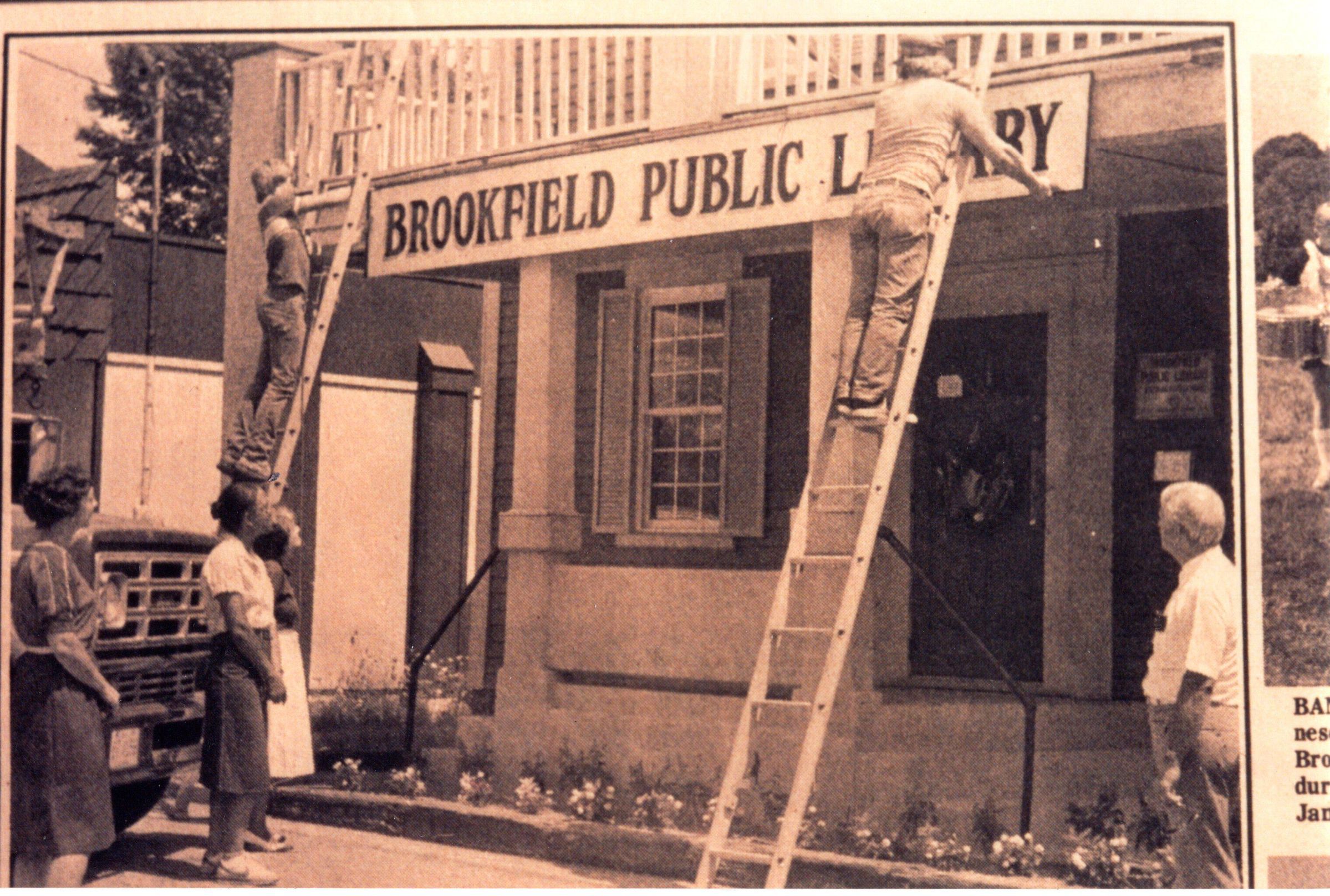 Installing the sign on the first library in Brookfield Township, which opened March 8th, 1981