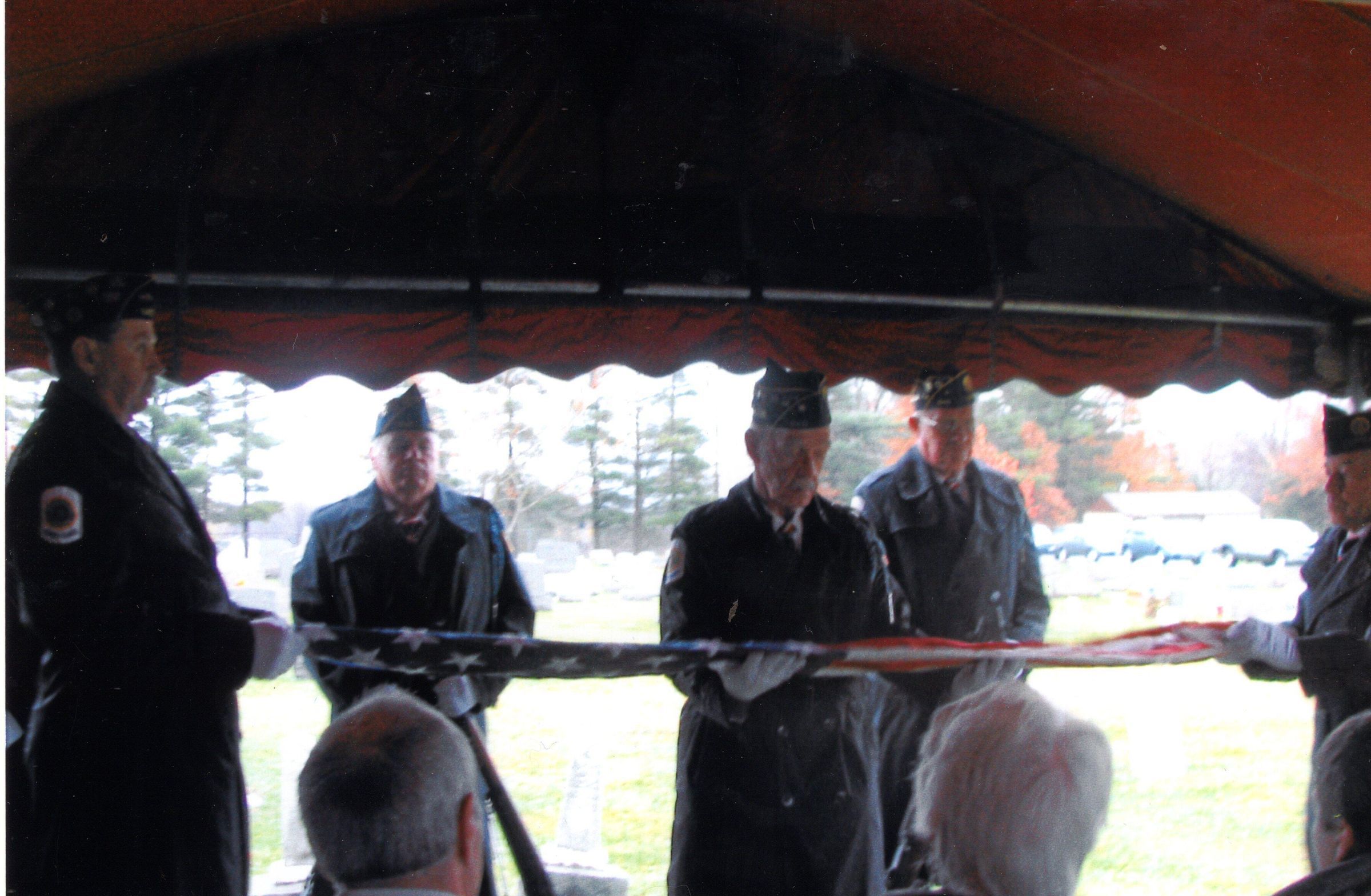 Photo at Jesse Reeder dedication of various military veterans folding and presenting an American flag taken on October 27, 2012.