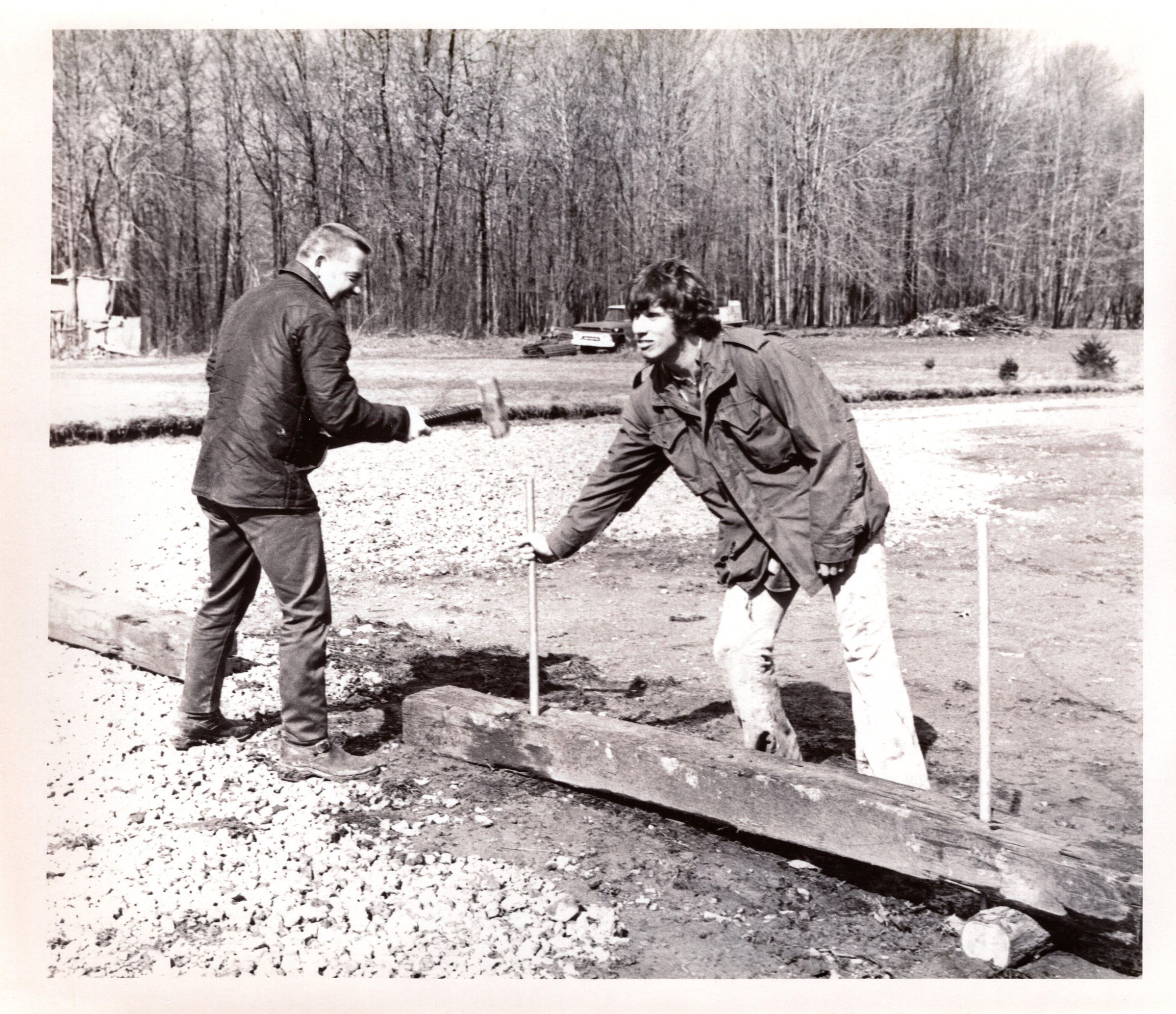 Photo of John Miller and Ralph McFarland working outside in 1976