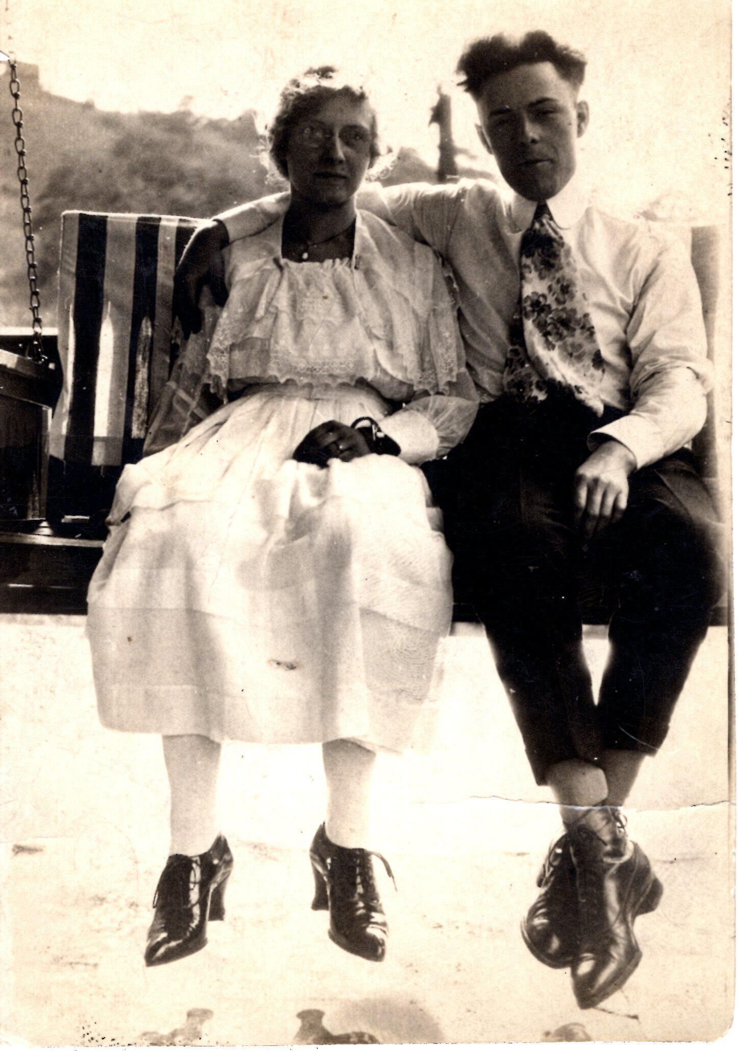 Photo of unidentified man and woman on a bench swing.
