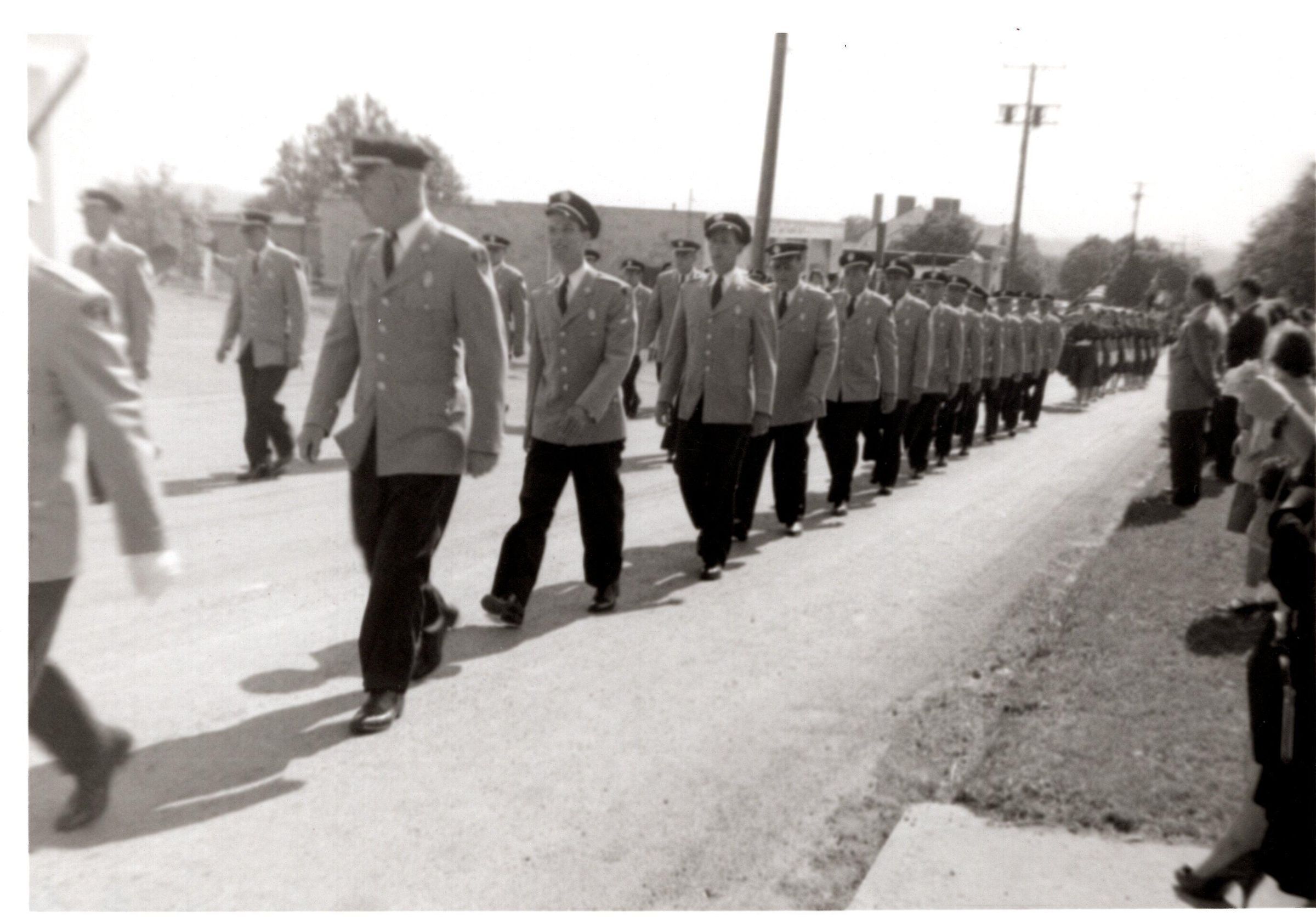 Photo of a groups of people marching in a parade.