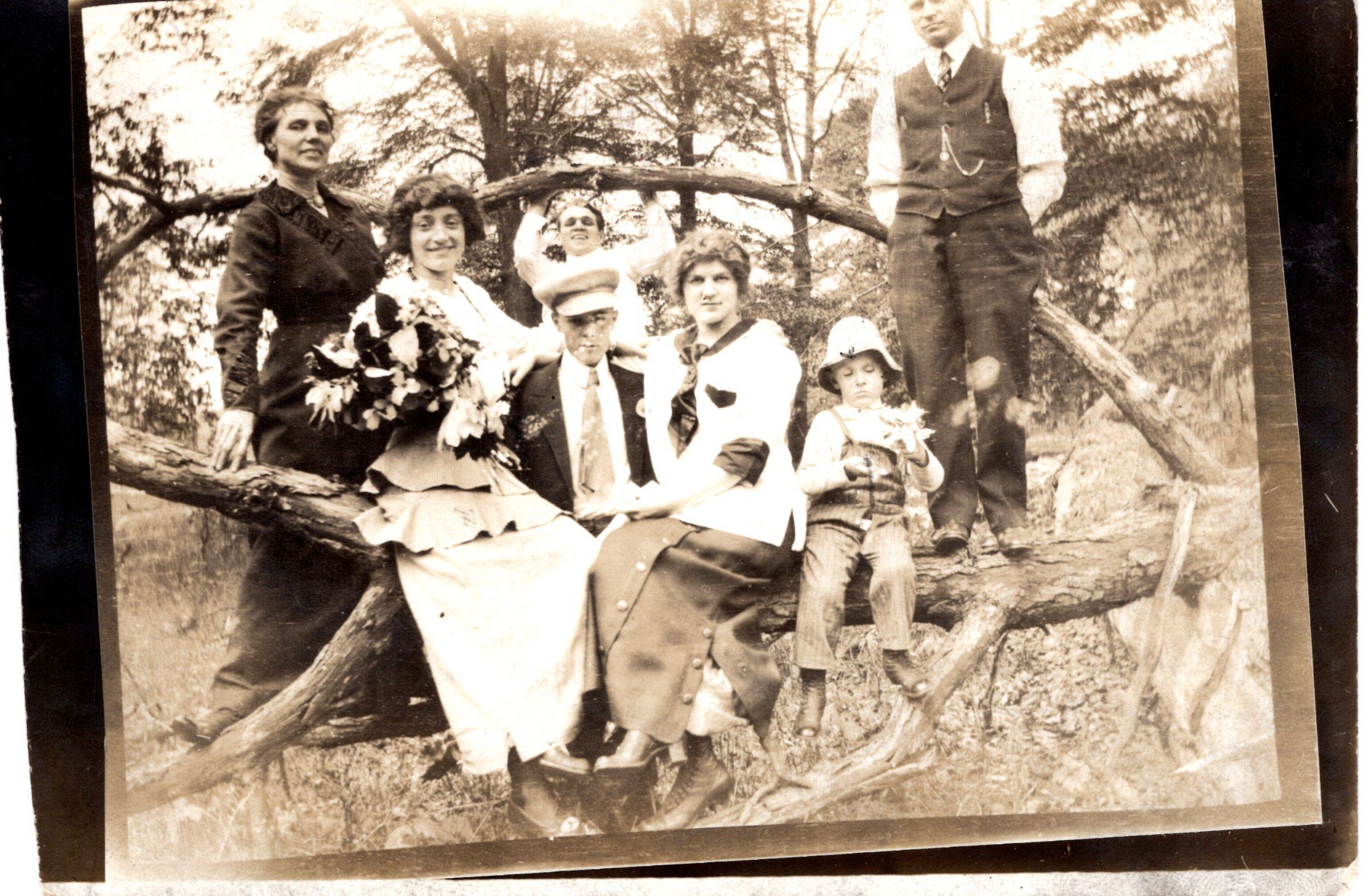 Men, Women and Child on Tree Branch