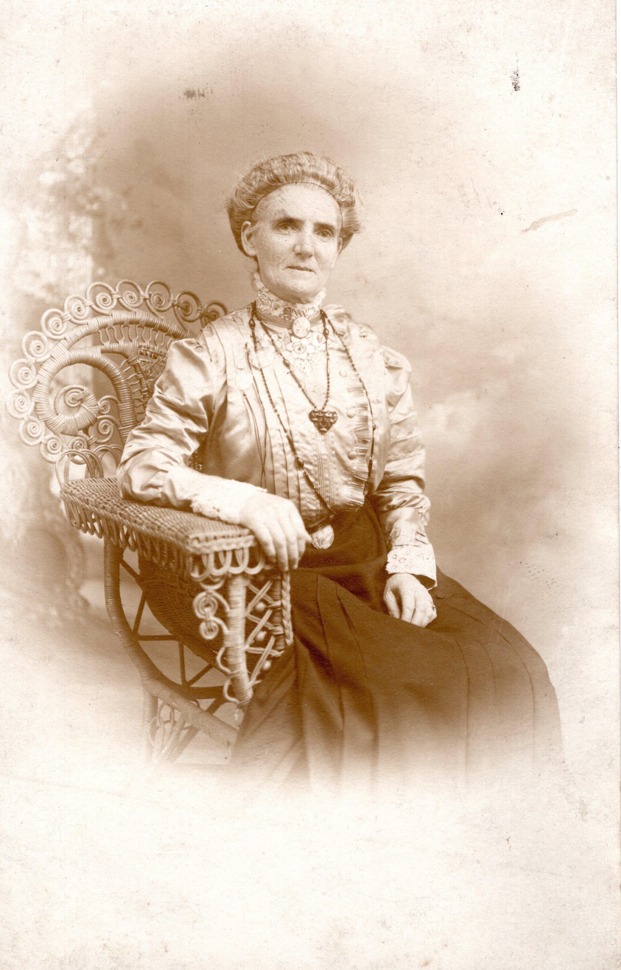 Photo of an unidentified older woman sitting in chair.