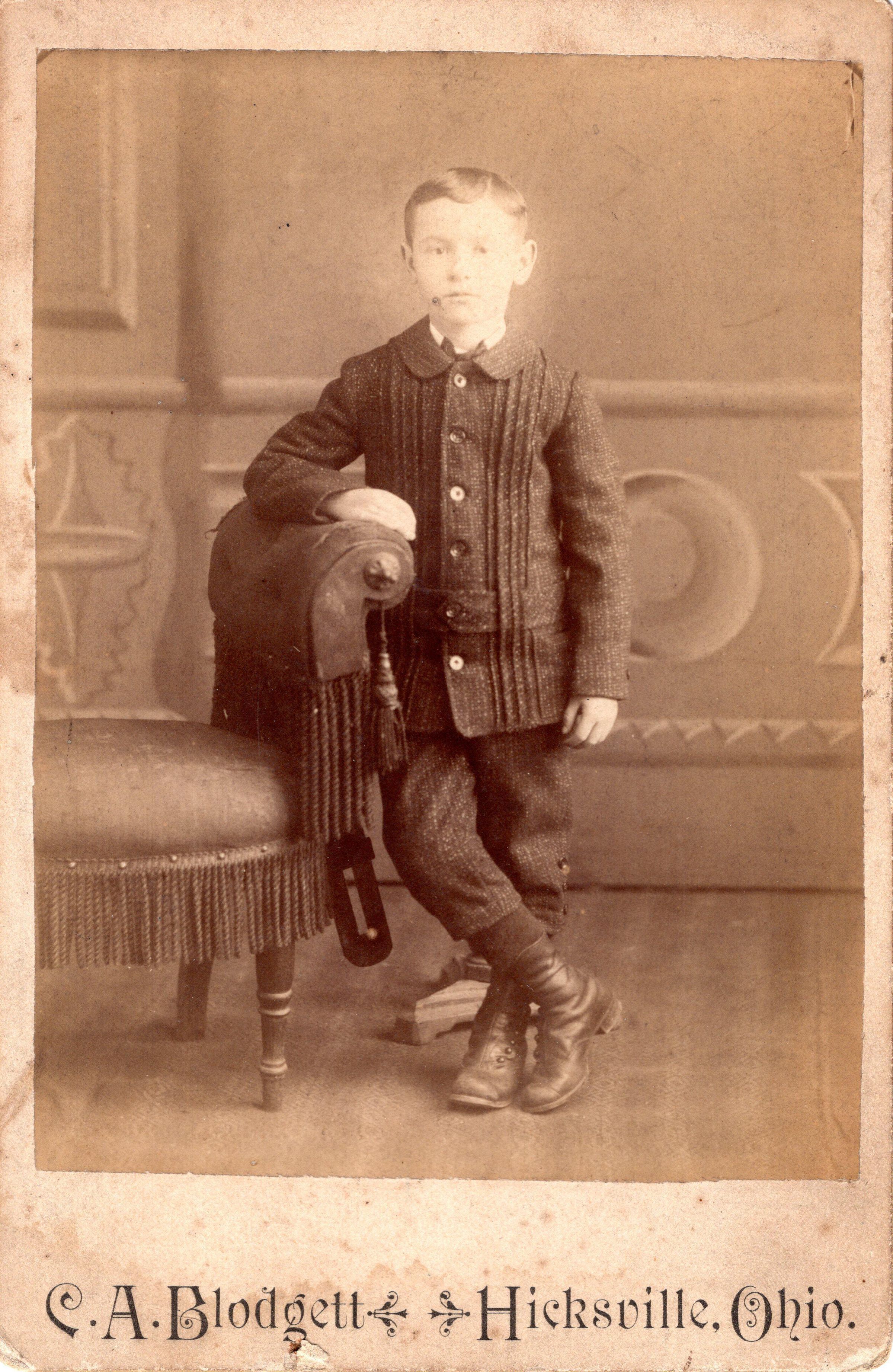Portrait photo of an unidentified boy standing.