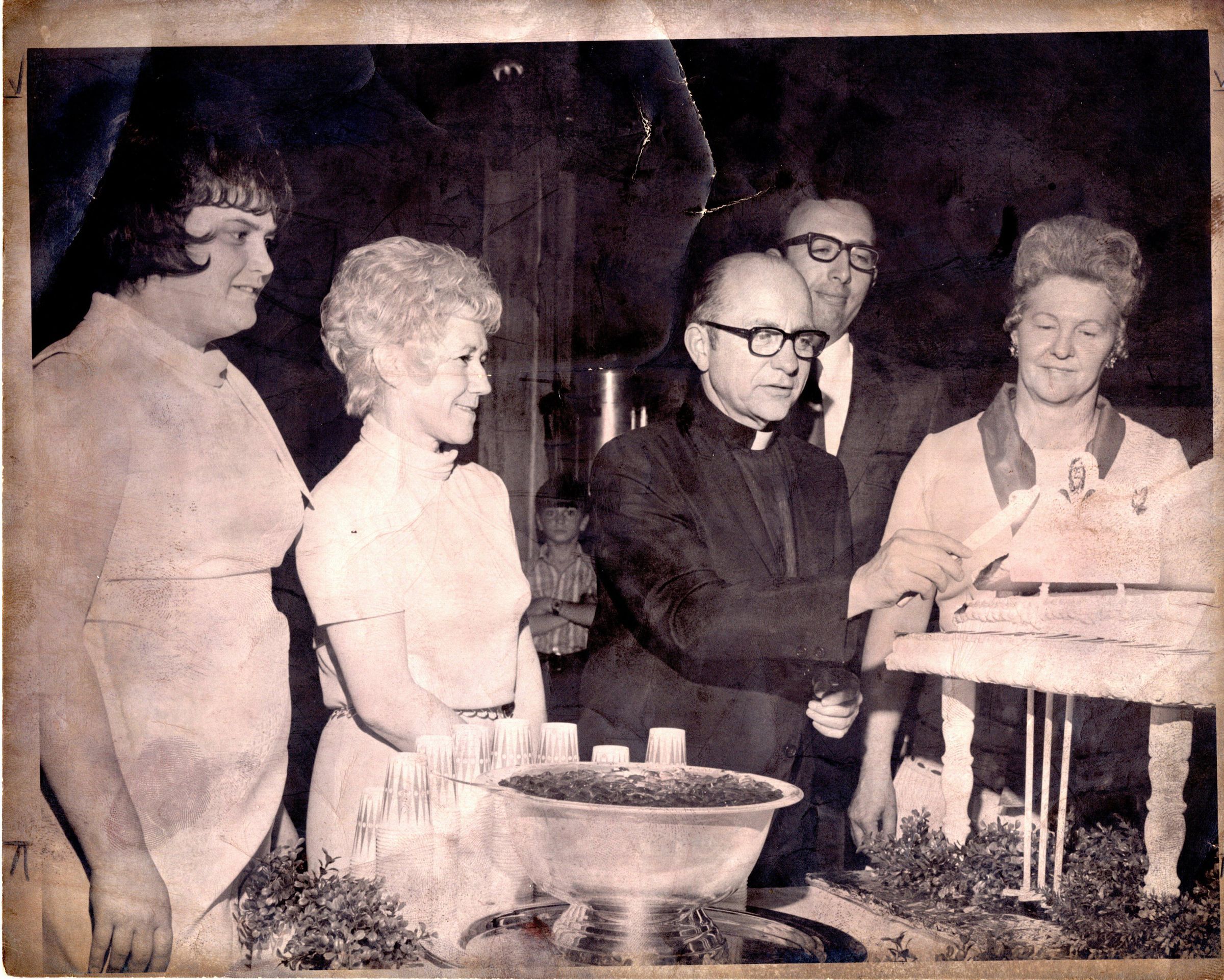 Priest Cutting Cake, Monsignor Reagan