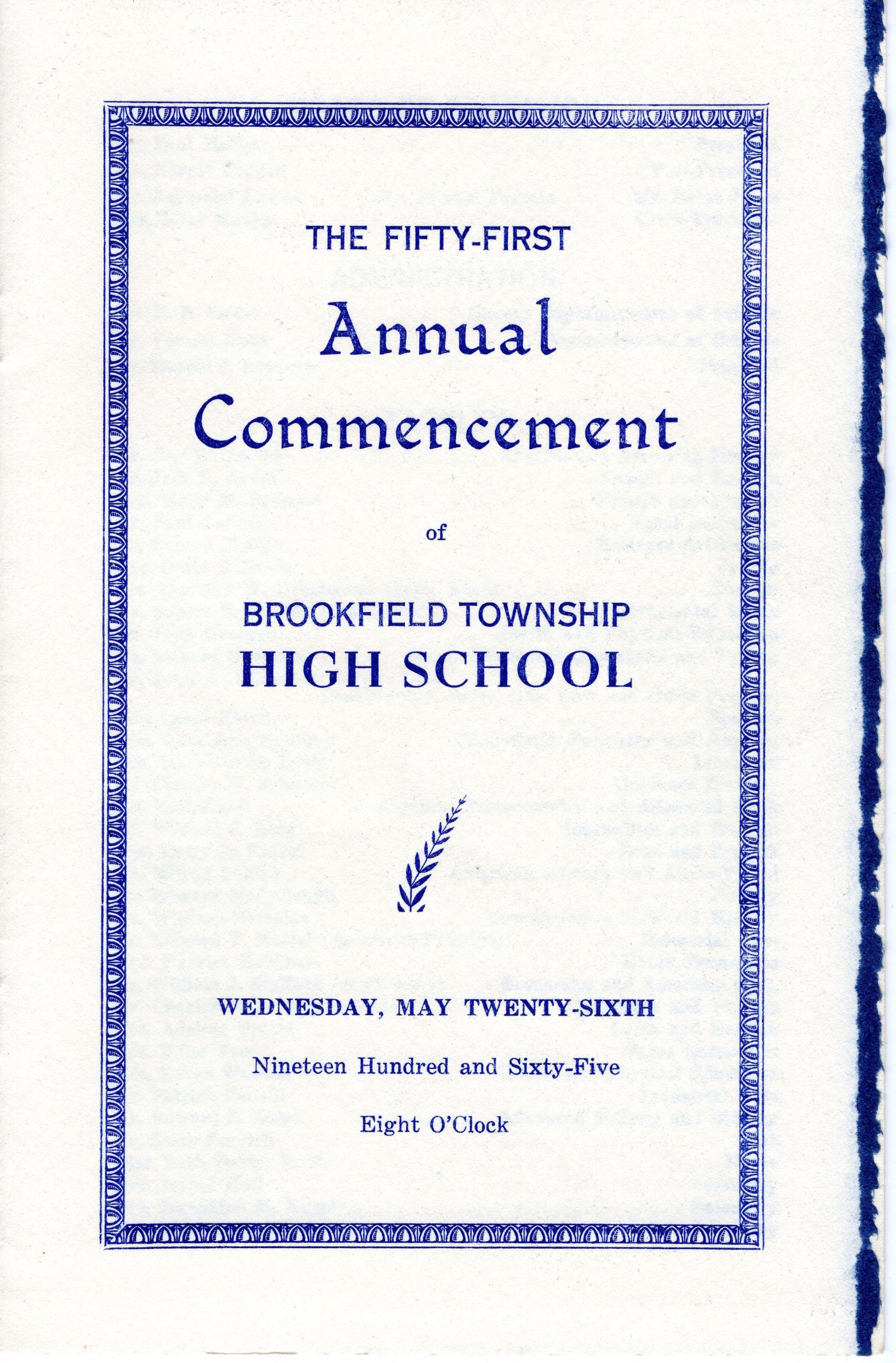Program for Brookfield High School 51st Commencement. Graduating Class of 1965.