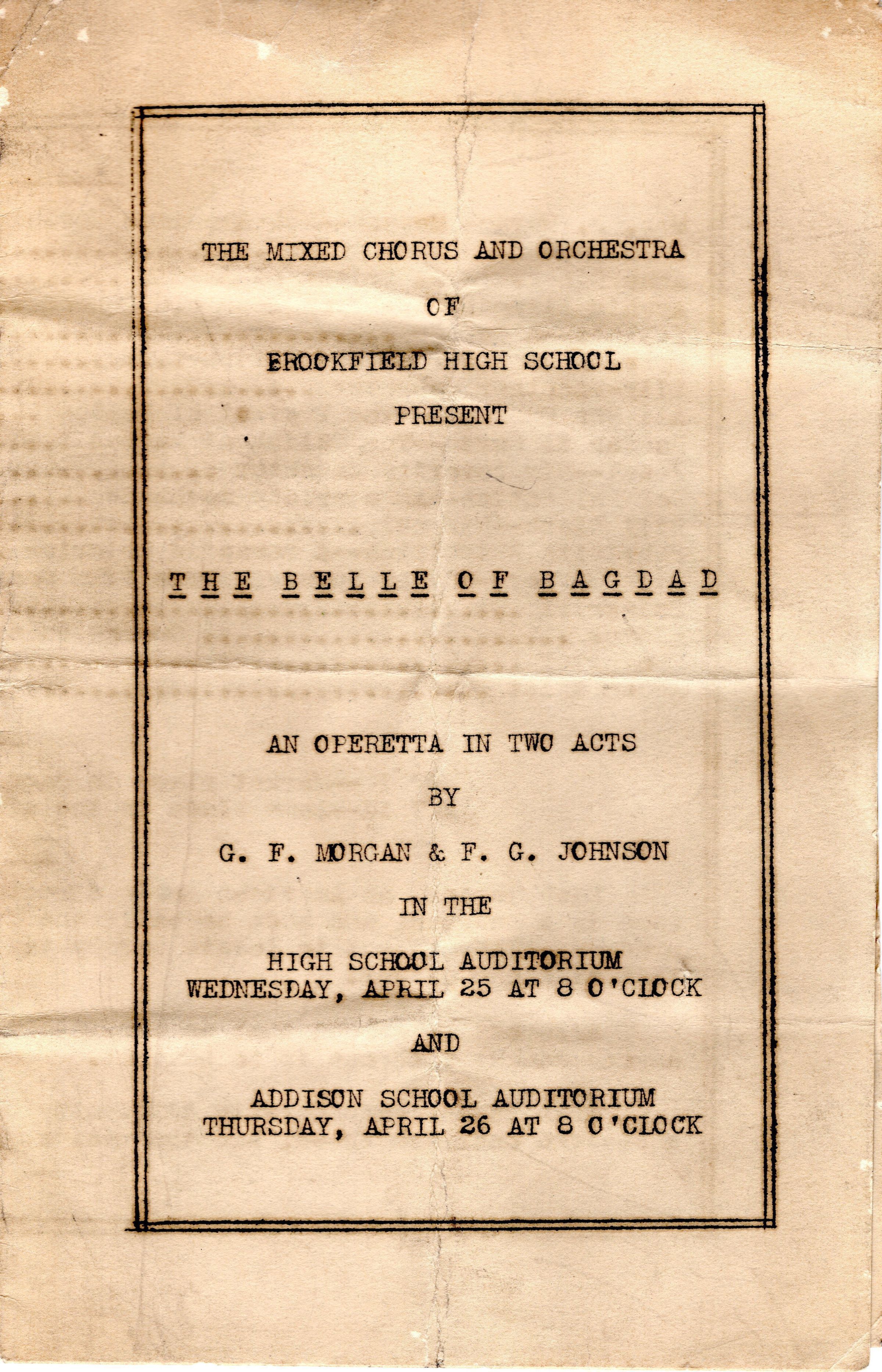 Program for school play "Belle of Bagdad", 1930s. Harold Cooper.