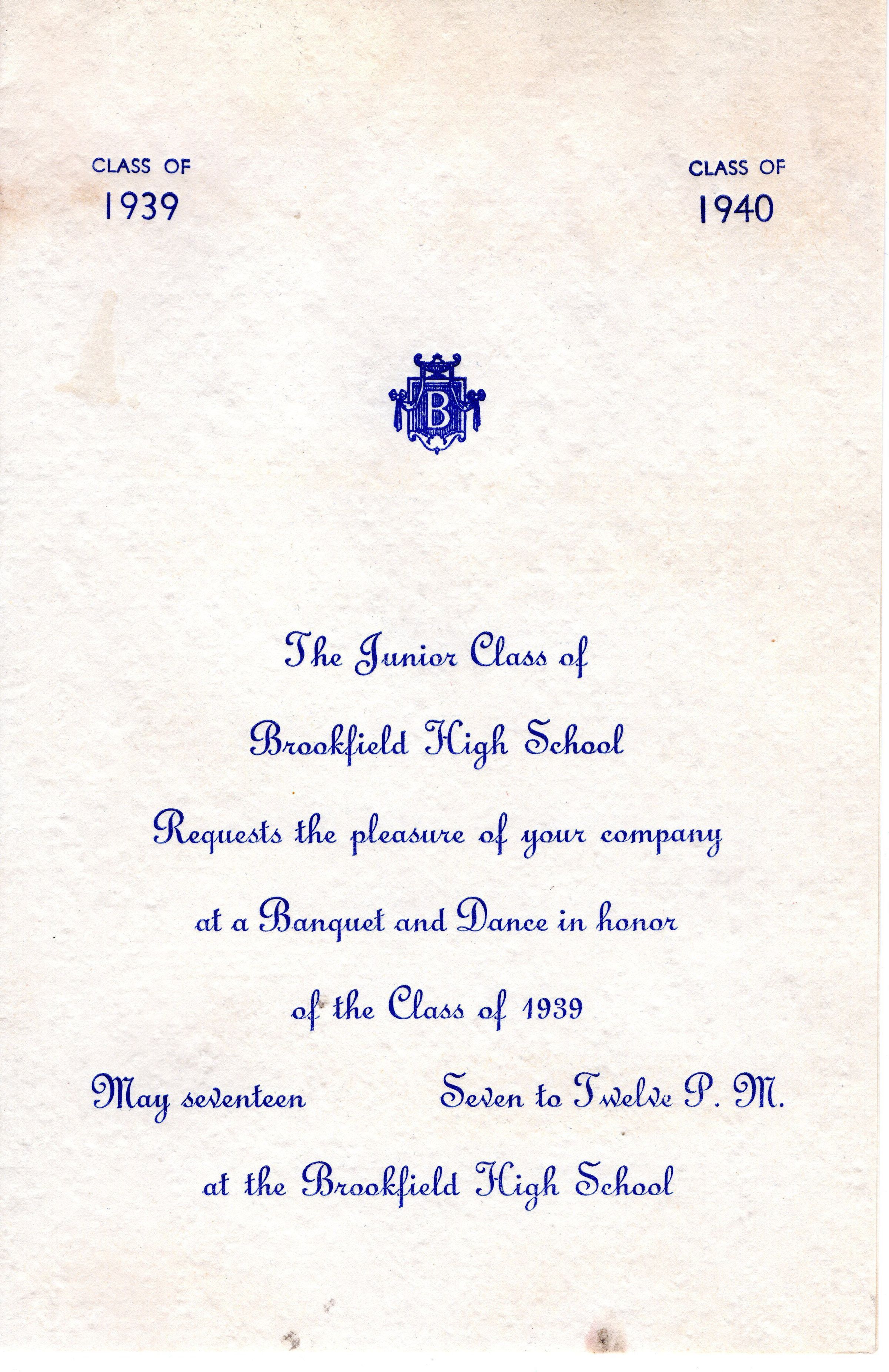 Program for Brookfield High School Junior Class, 1939. 2 copies