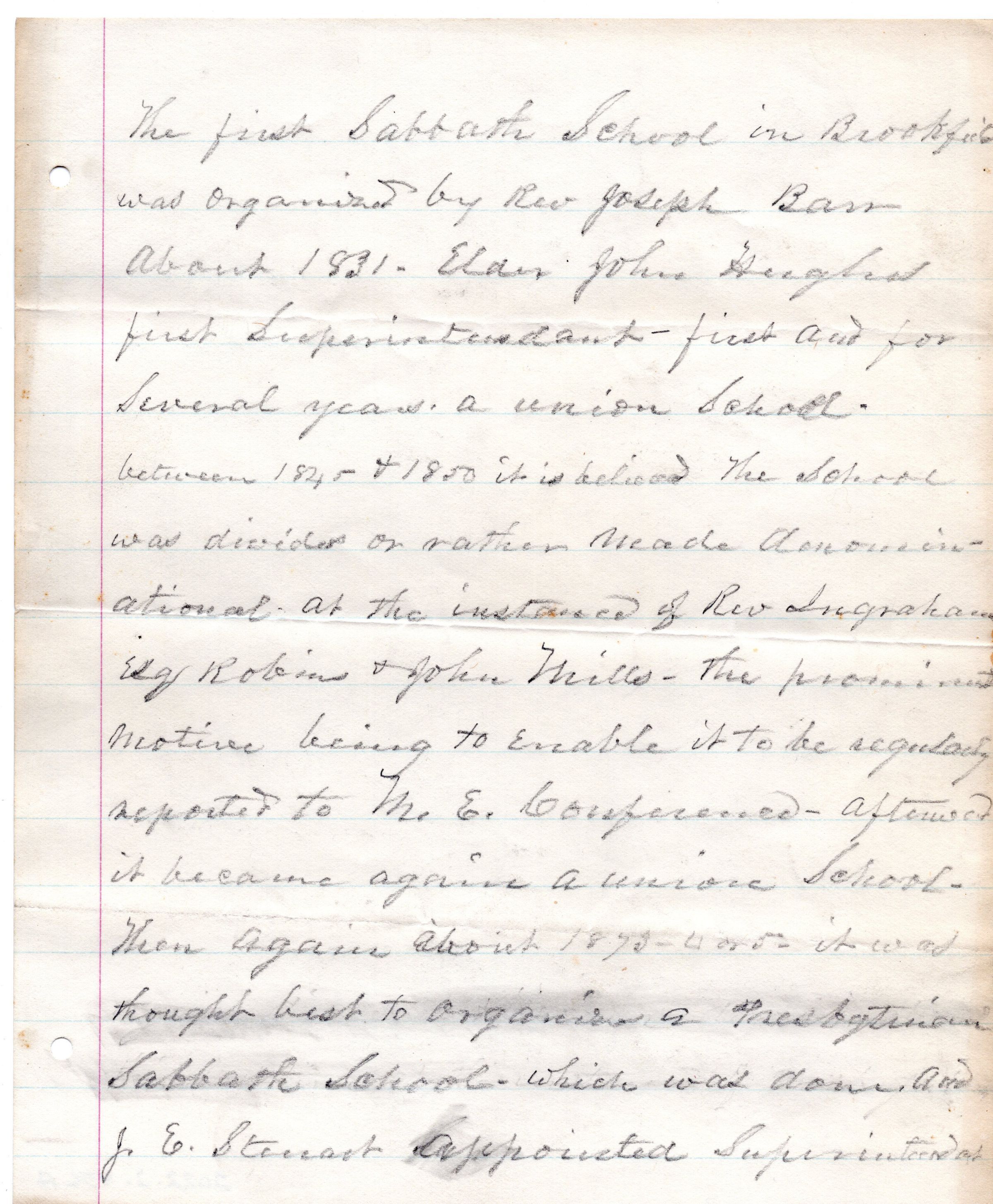 Sabbath School Founding Document for Brookfield Presbyterian Church 1831