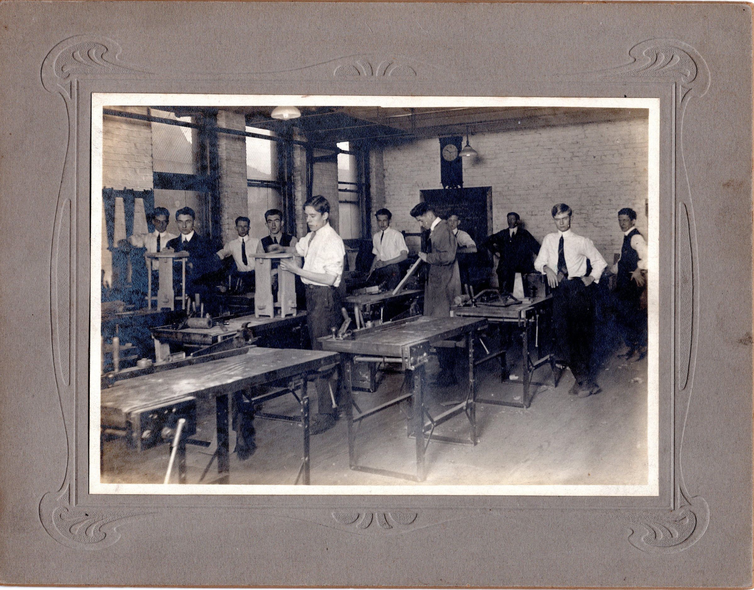 Believed to be a image of a shop class taken at a Brookfield School.