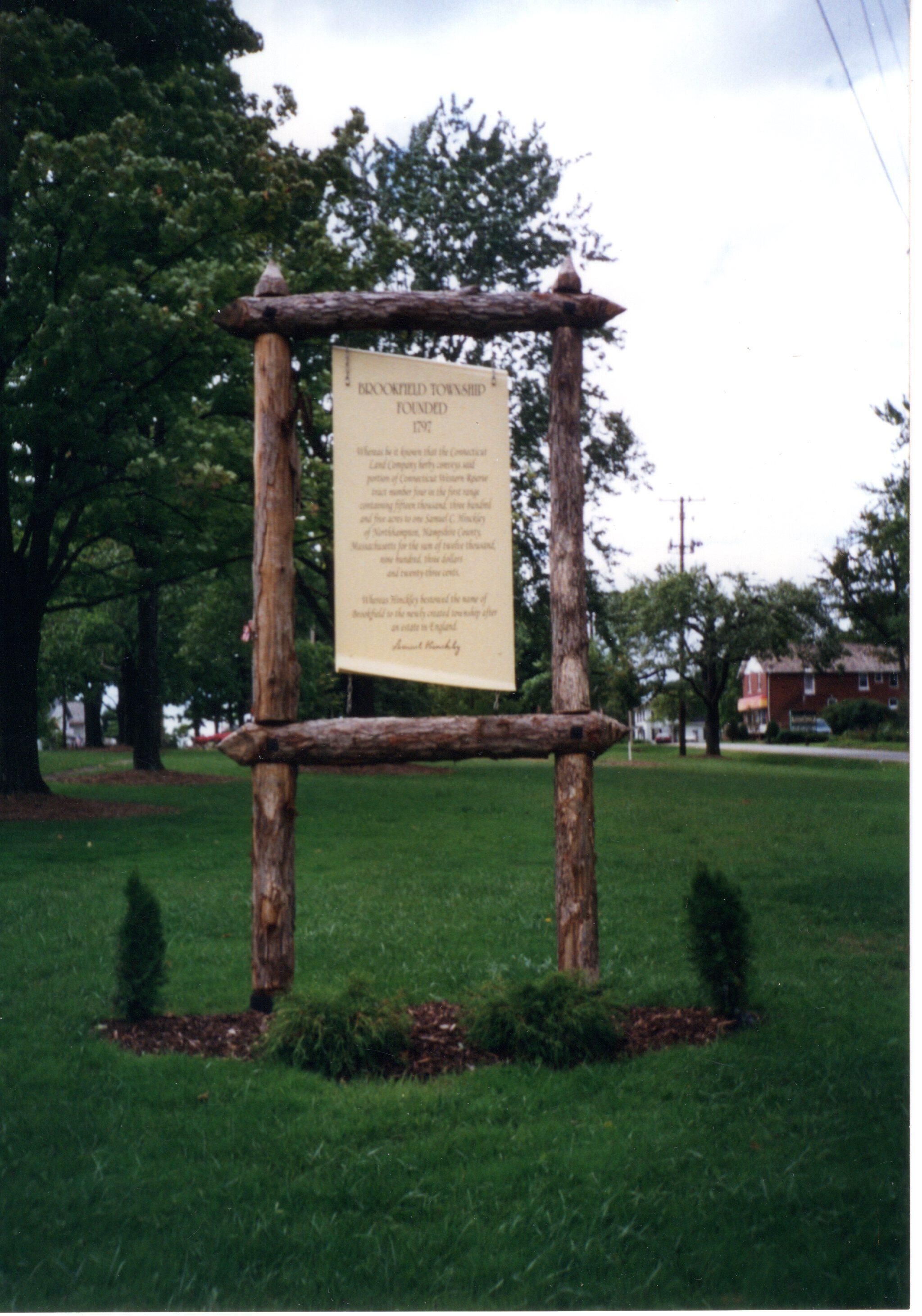 Photo of sign with information on the founding of Brookfield
