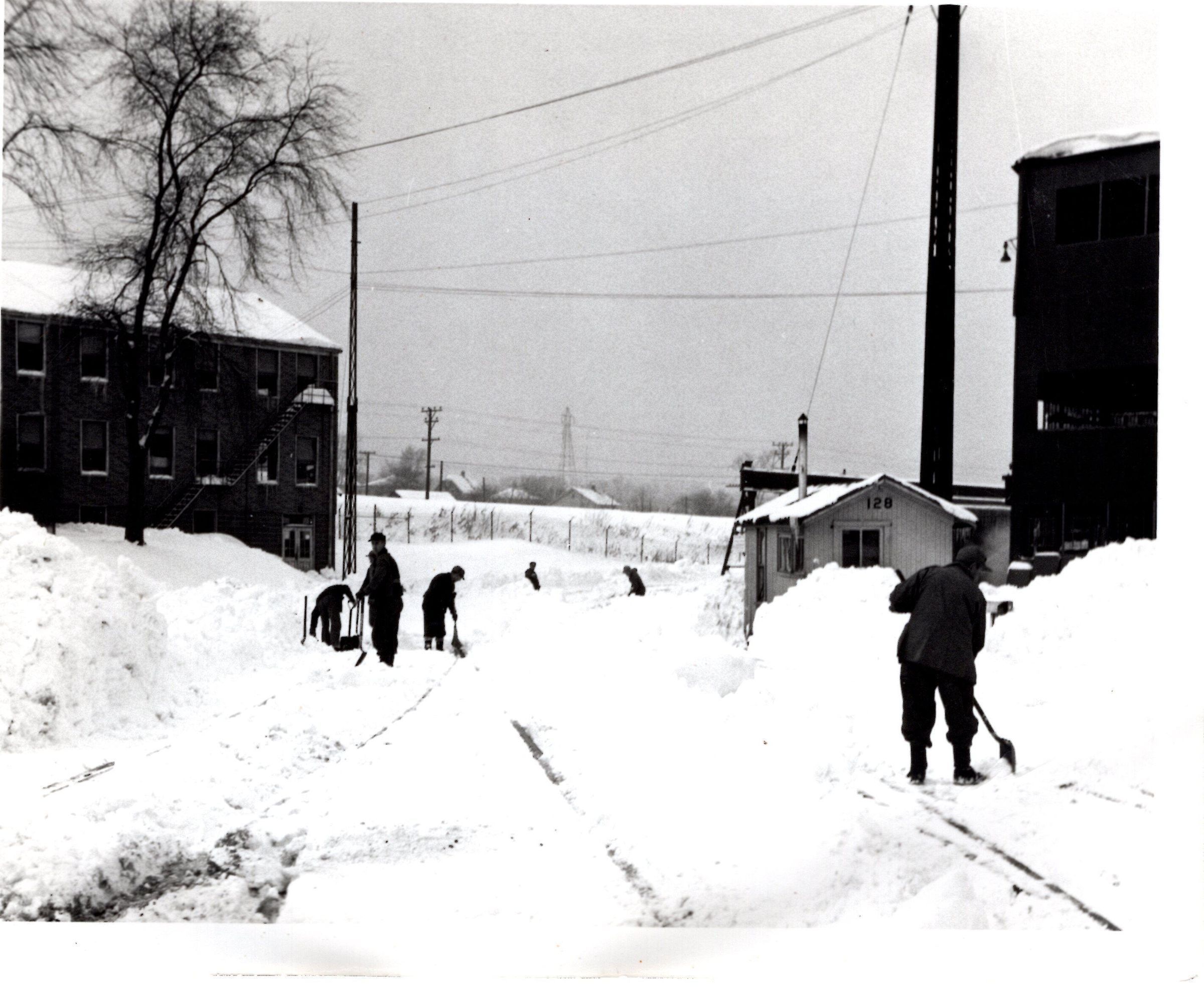 Photo of people shoveling snow from the snowstorm, November 28, 1950.