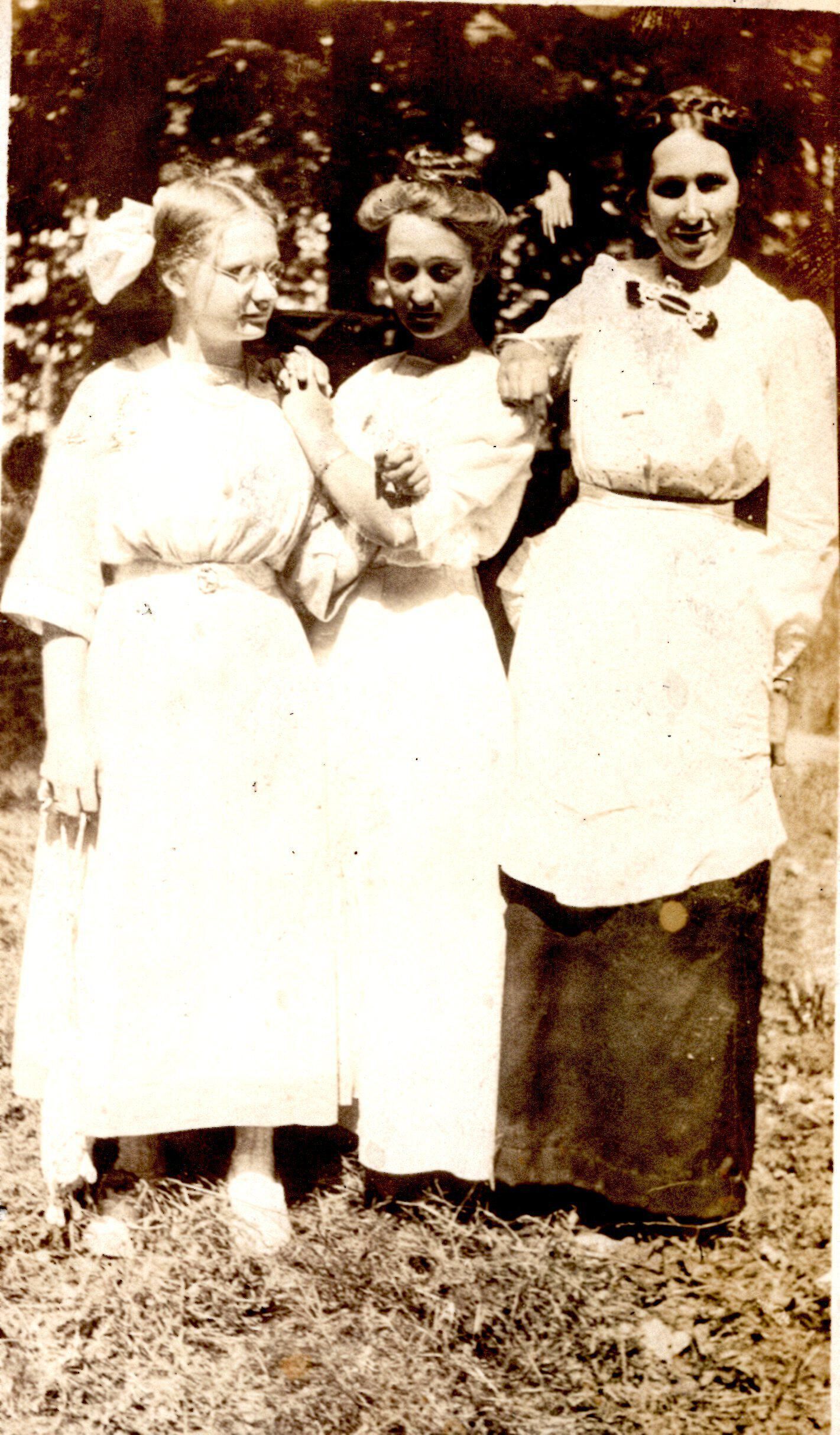 Photo of three unidentified women standing together outside.
