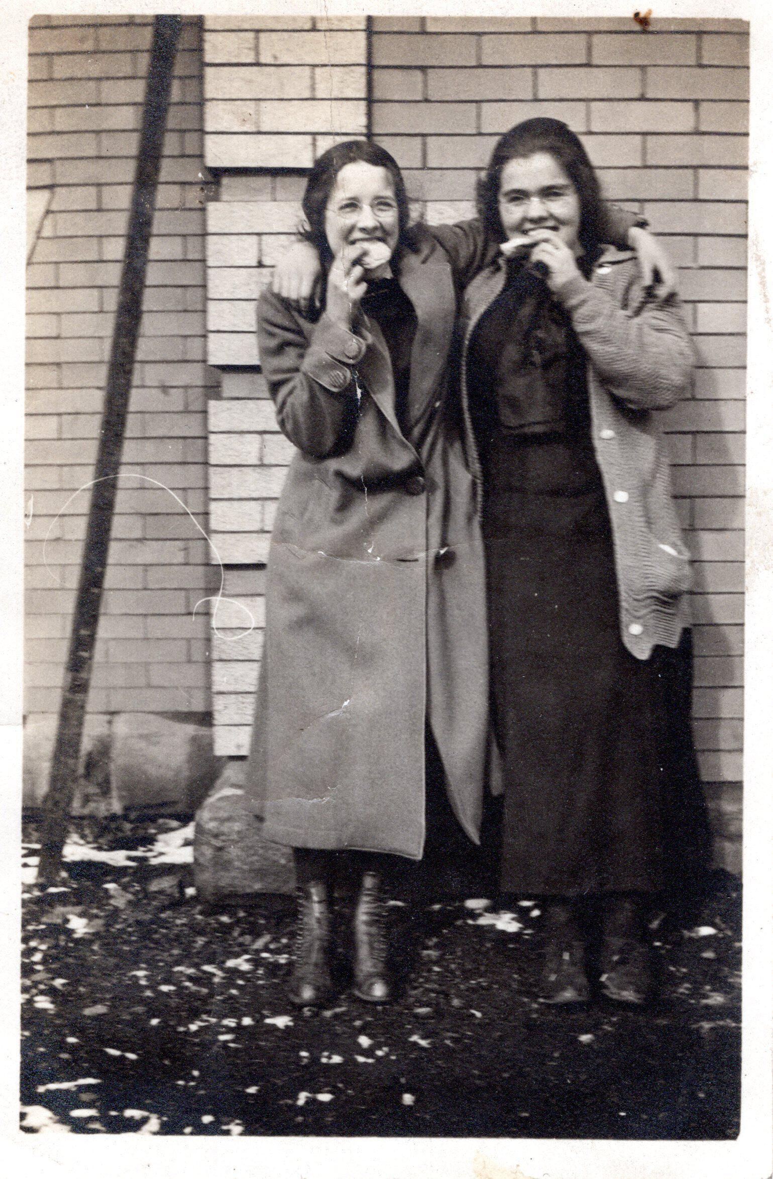 Photo of 2 unidentified women eating.