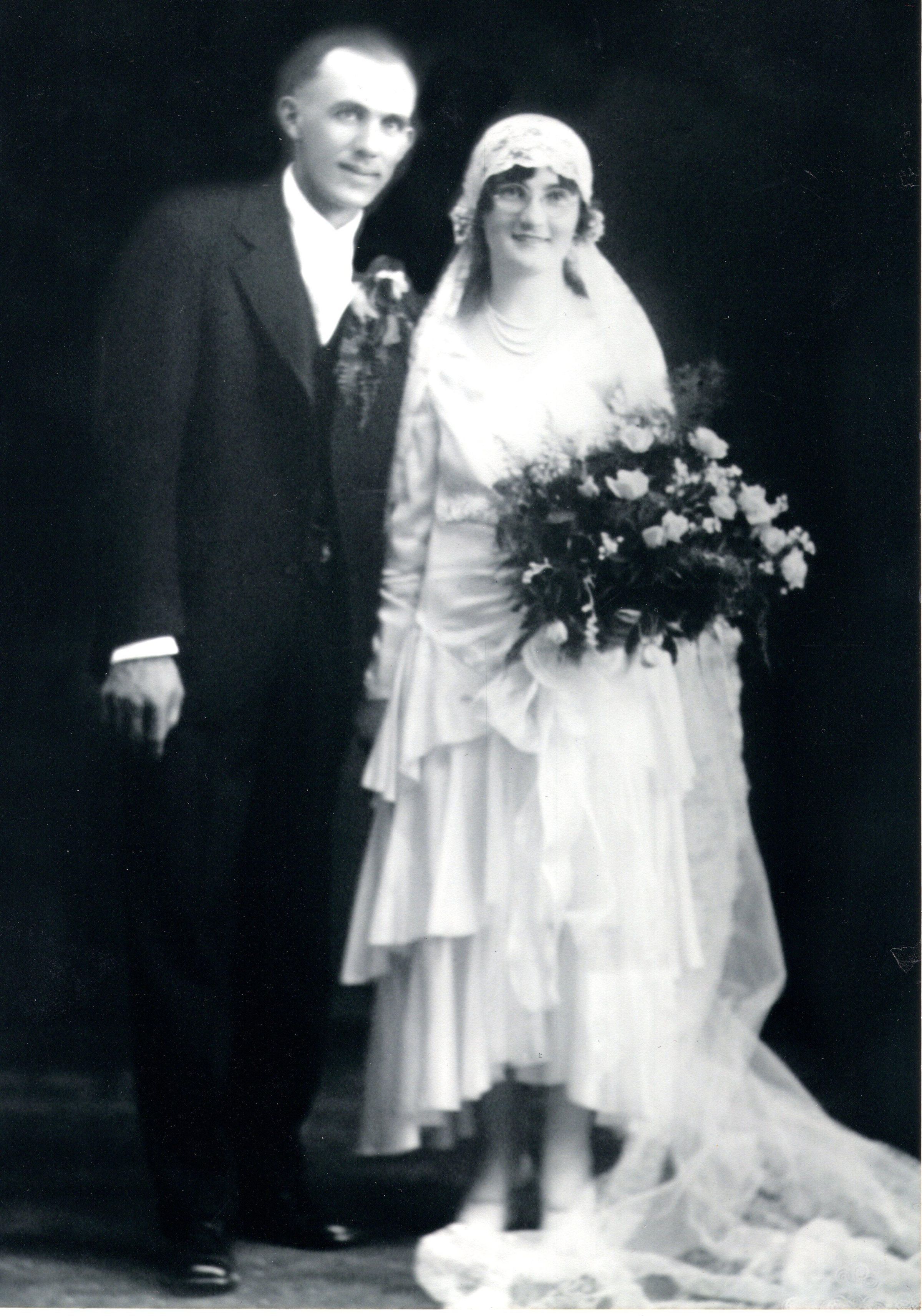 Wedding photo of Mary Swallow and Peter Trembush, married June 14, 1930. Parents of Evelyn Pherson.
