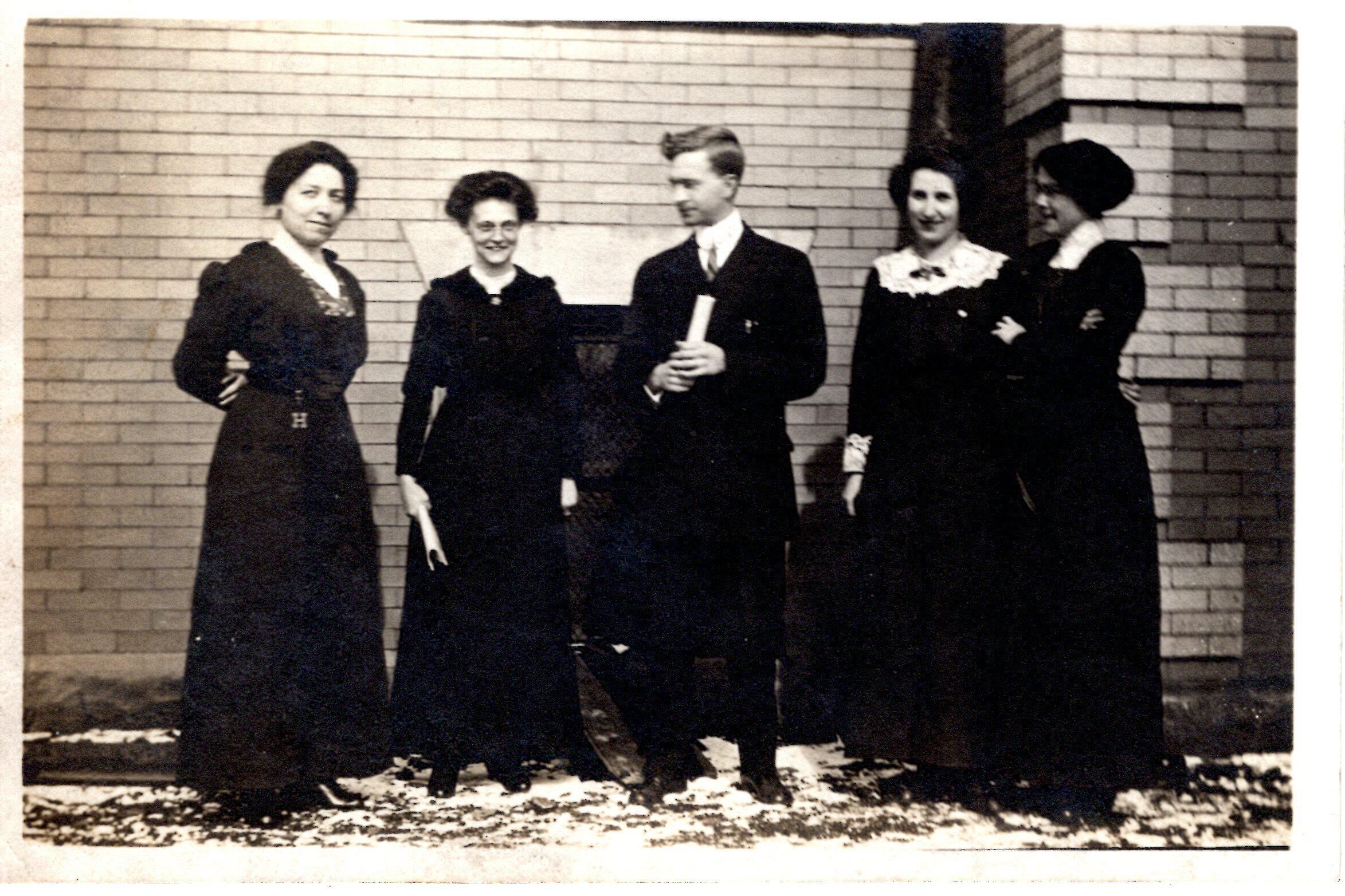 Photo of a group of 5 unidentified man and women dressed in black.