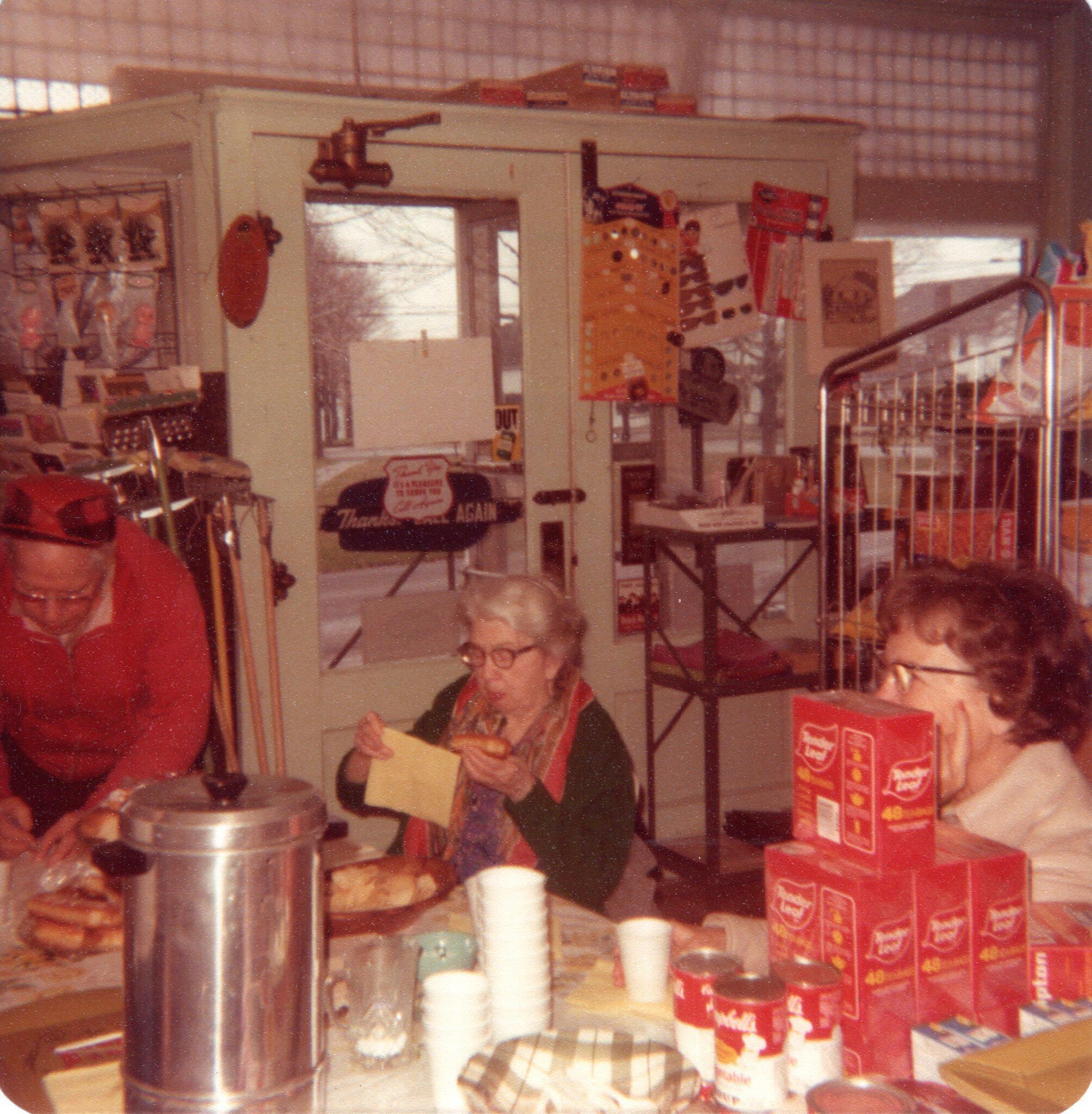 Lois McMaster and Rose inside Knivel's Store in 1979.