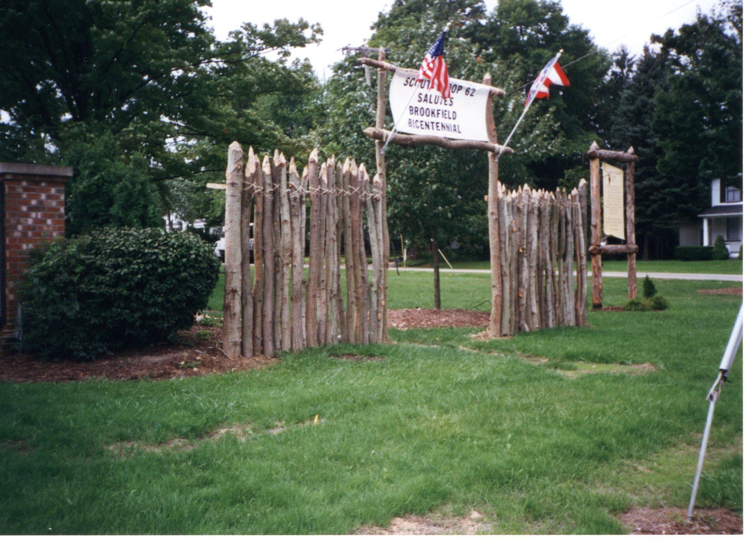 Wooden fence on the Brookfield Township Green made by the Boys Scouts for the Brookfield's Bicentennial
