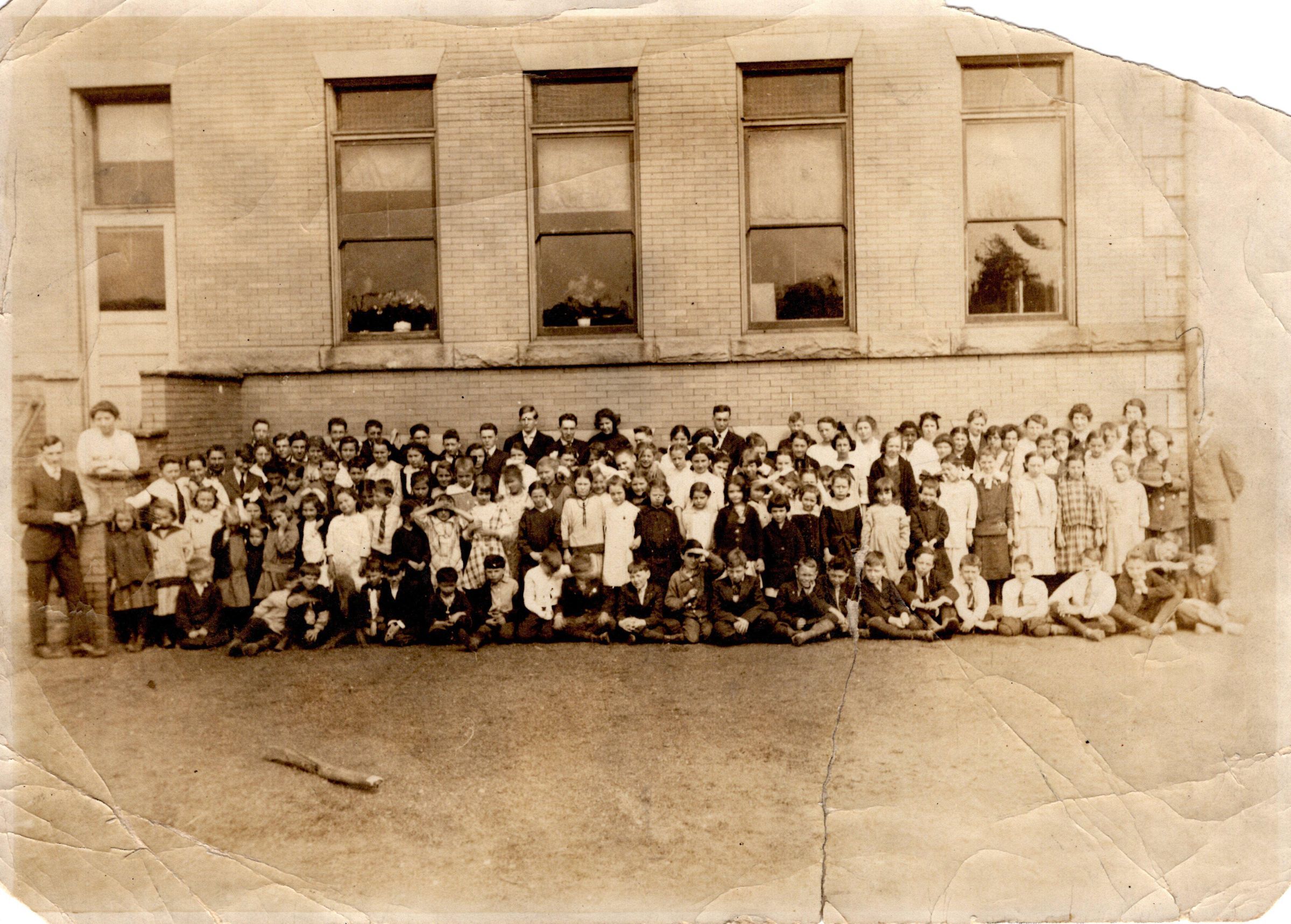 A photo of a group of people at the Yellow Brick School.