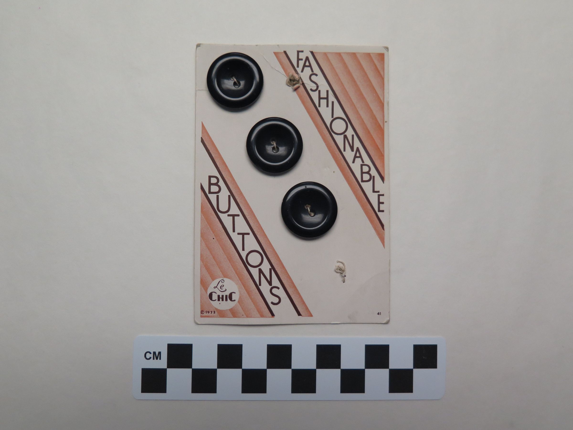 This is a card with 3 round black Le Chic brand buttons on it. The card measures 3" (w) x 4.5" (l).