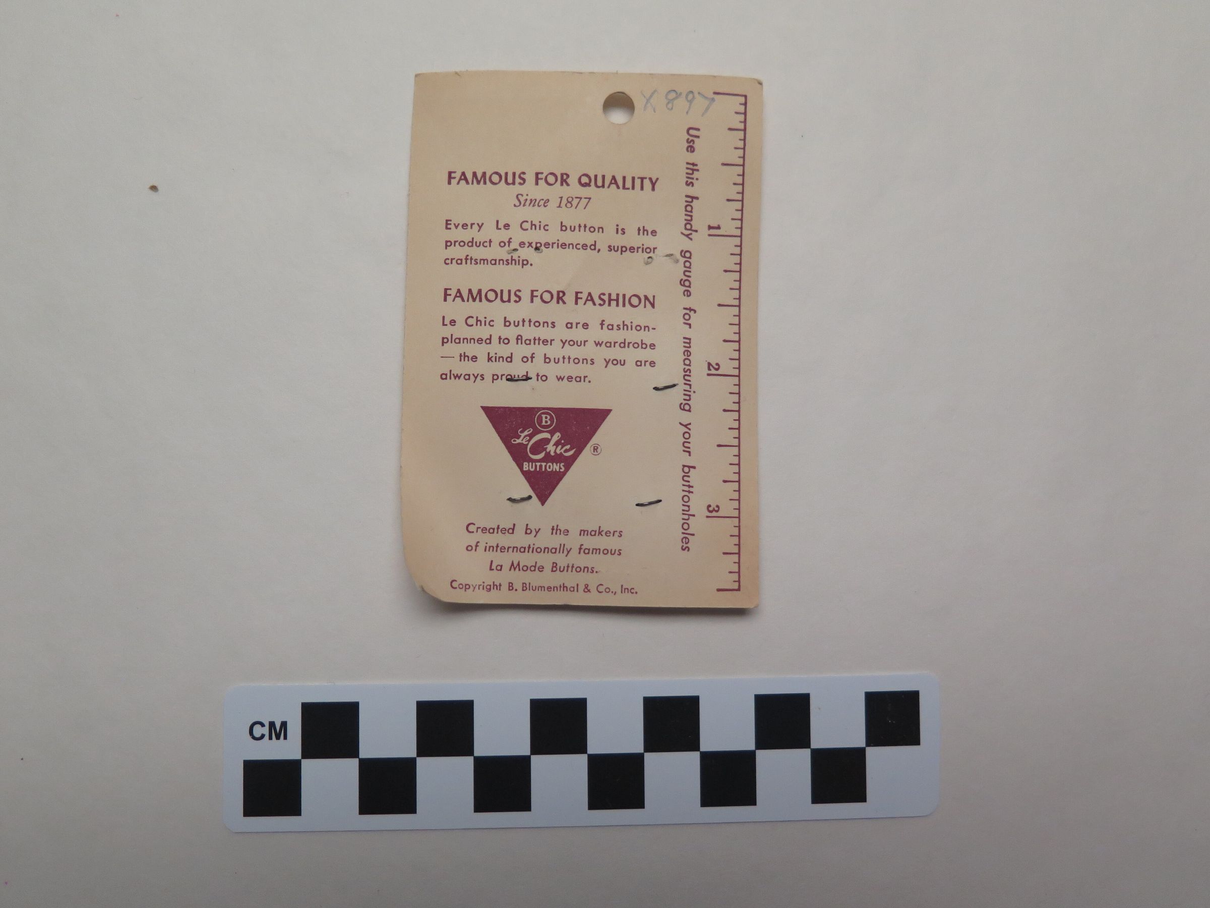 Front of card with buttons.: Origsize: 2.5" (w) x 4" (l); Origformat: Artifact