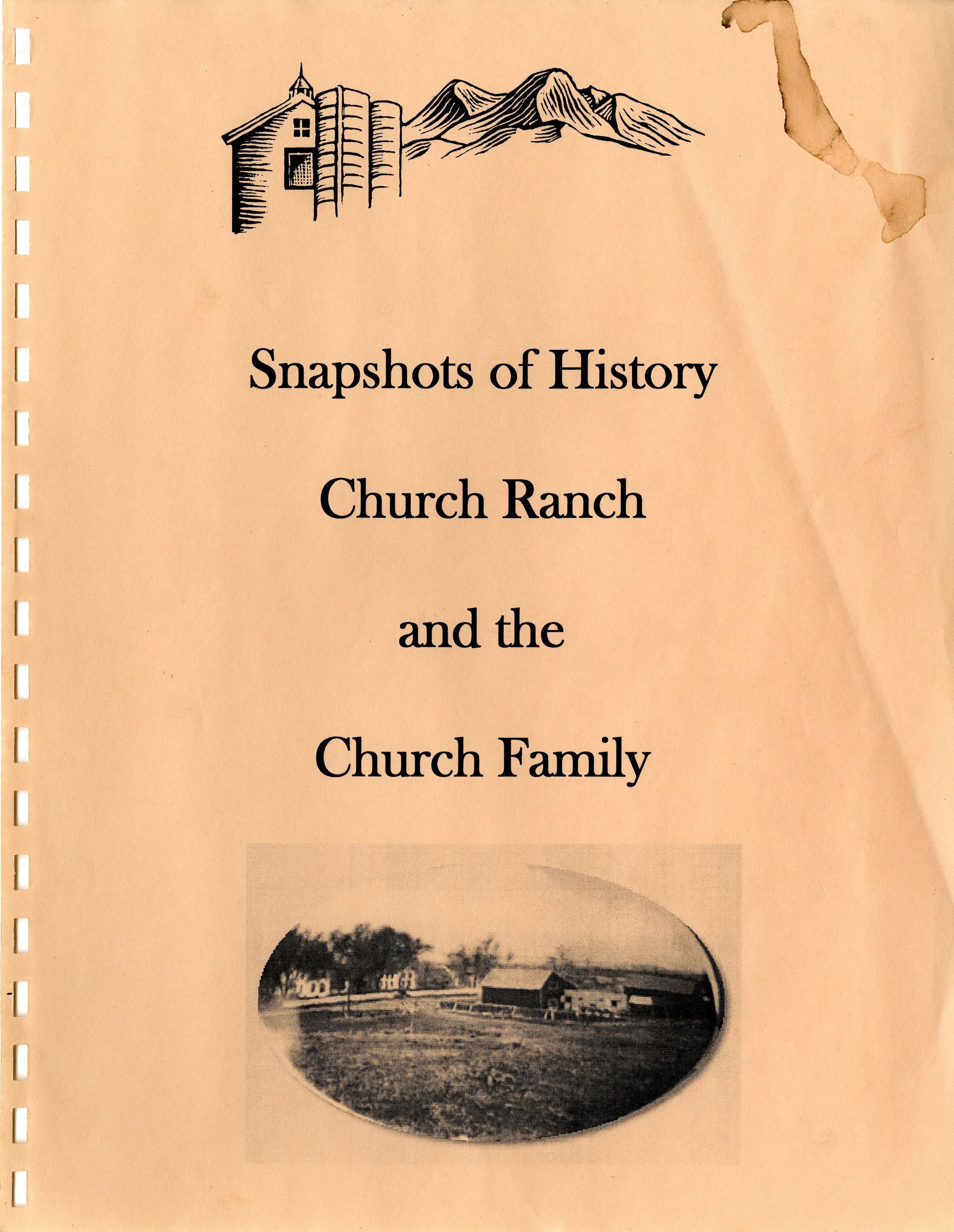 "Snapshots of History: Church Ranch and the Church Family," edited by Kandi McKay, daughter of Charles Church McKay (c1990s-2006). The work is a compilation of journal records, news articles, reminisces, photographs, and family history (all photocopies). Material represents Church family history from 1830 to 2006.Collection