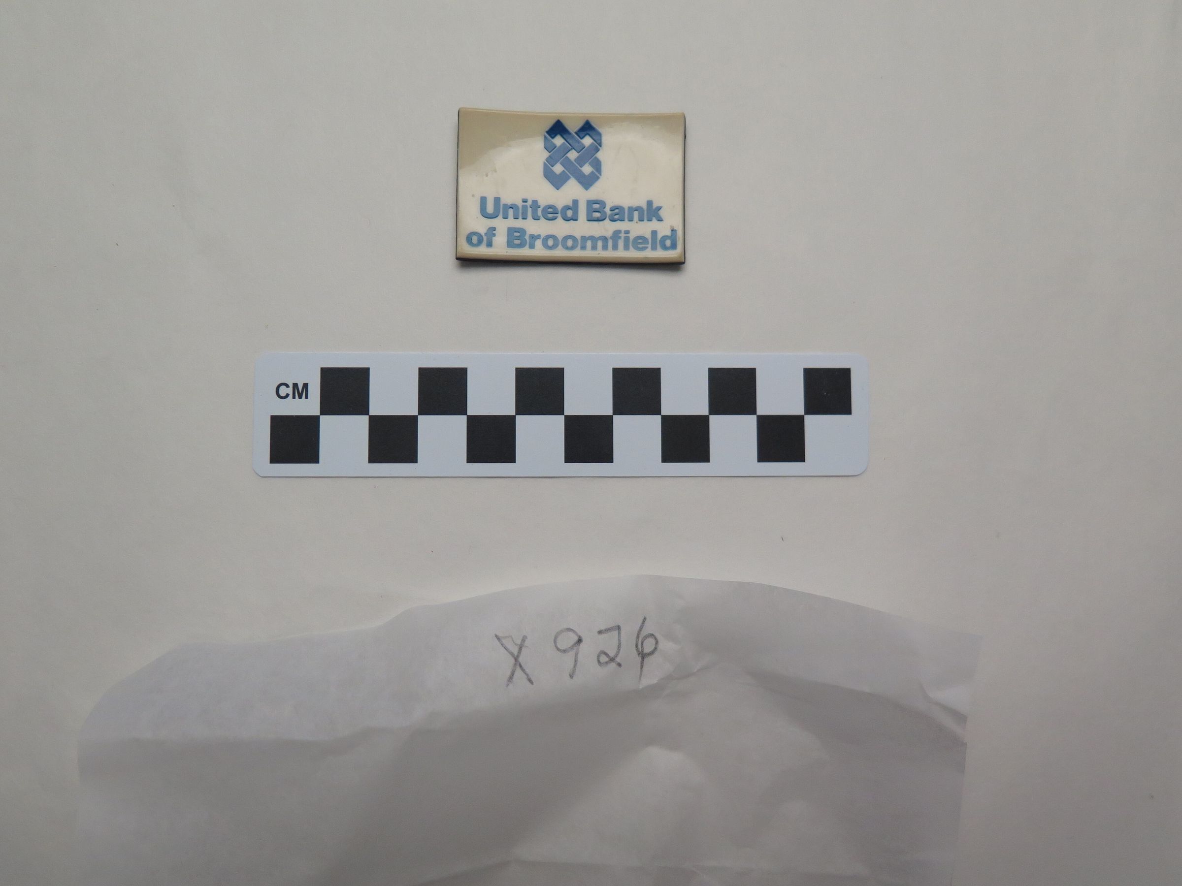 This is a white magnet with blue text on the front that reads, "United Bank of Broomfield". The magnet measures 1.75" (w) x 1.25" (l).