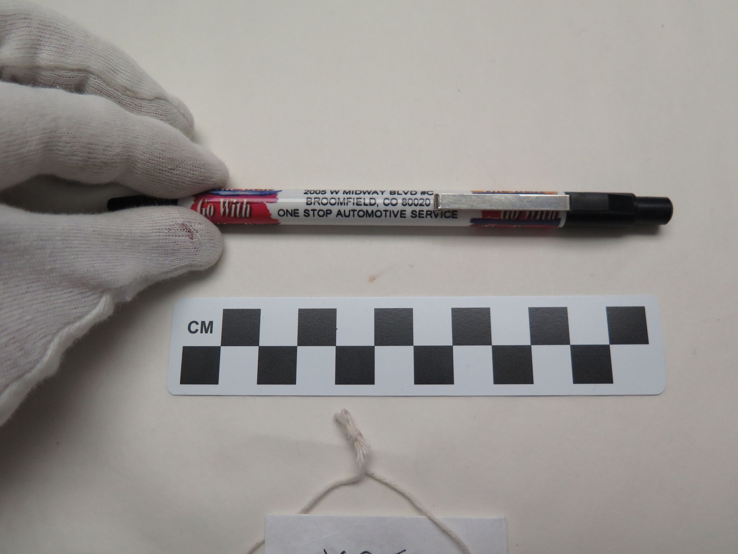 This is a pen from Rocky Mountain Tire and Auto in Broomfield. The pen clicks open. The pen measures 6" (l).