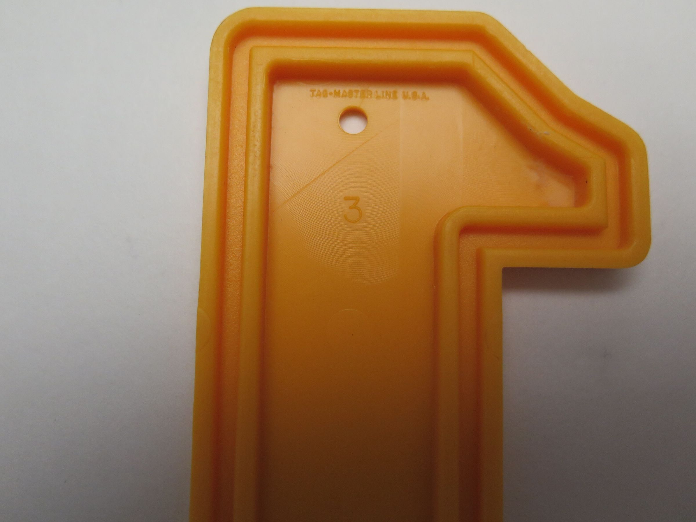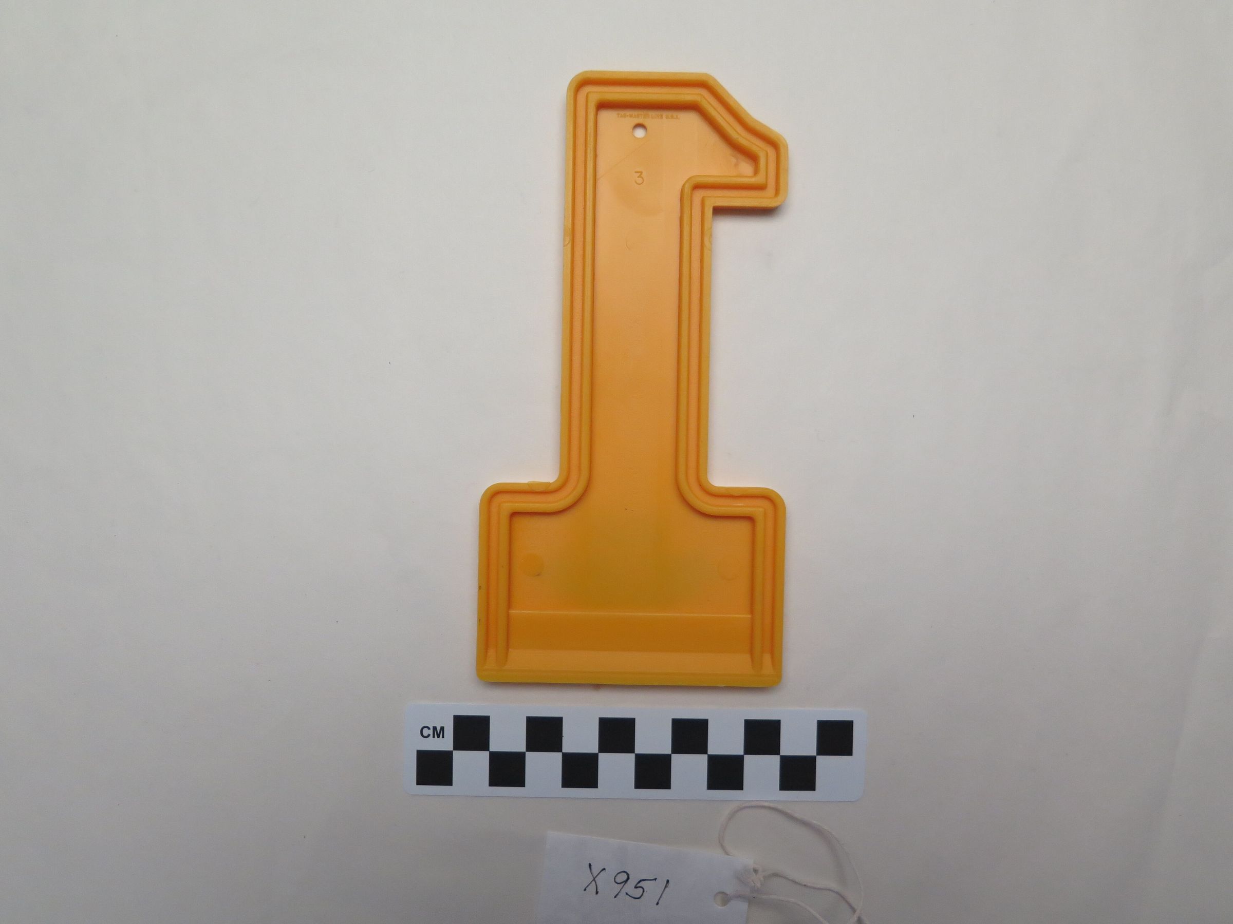 This is a yellow ice scraper in the shape of the number 1. The ice scraper has the text "Alexander Concrete Const. Co." on it. The ice scraper measures 3.5" (w) x 6.5" (l).