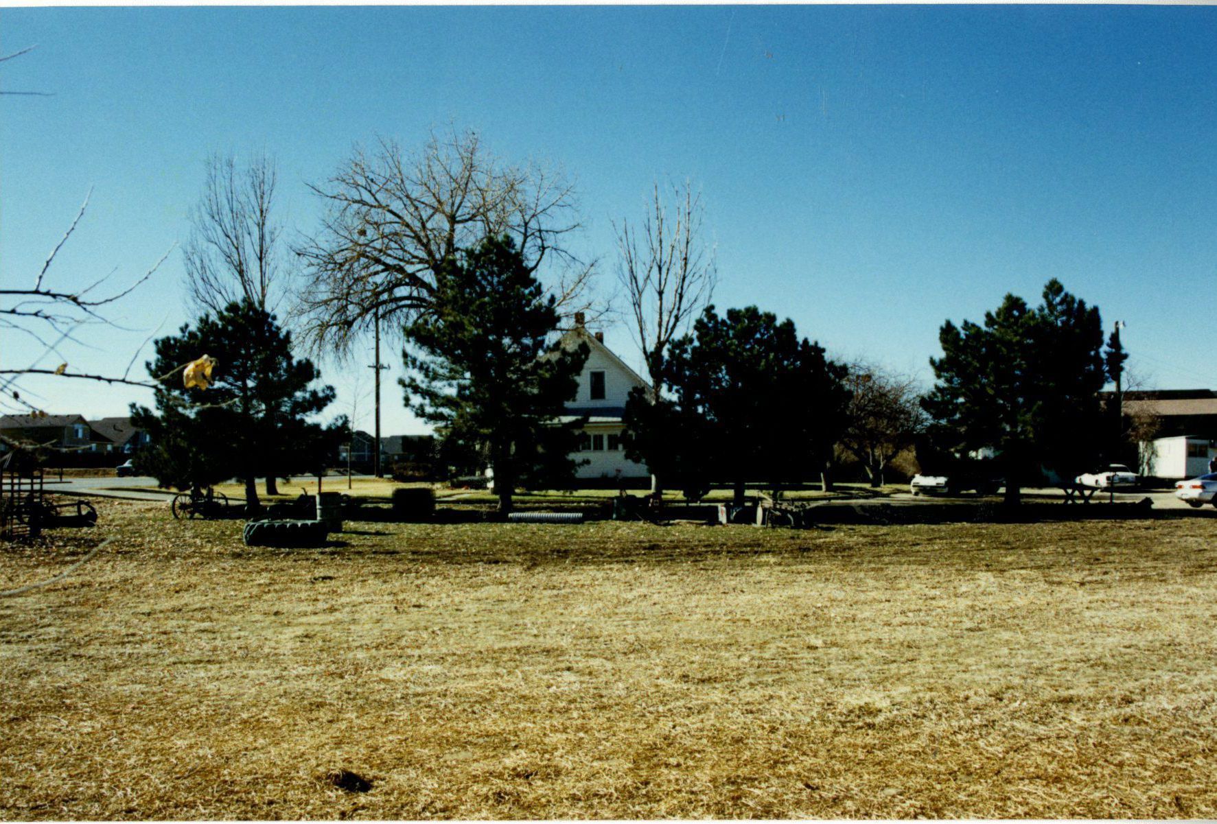 An open field with a street and the Brunner House in backgroundPhotograph Details
