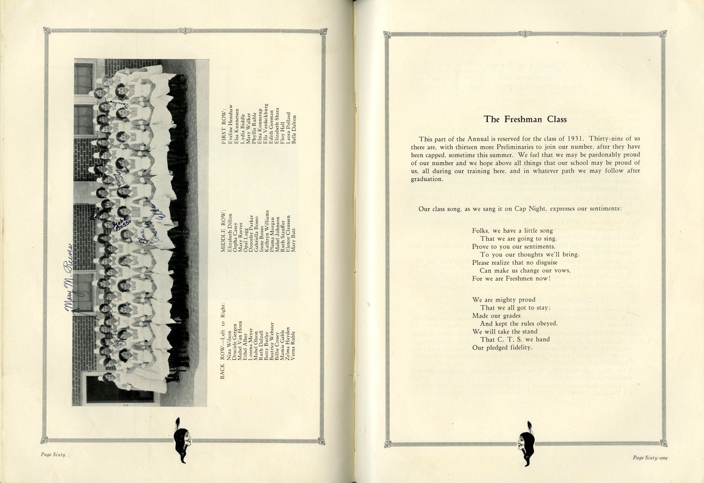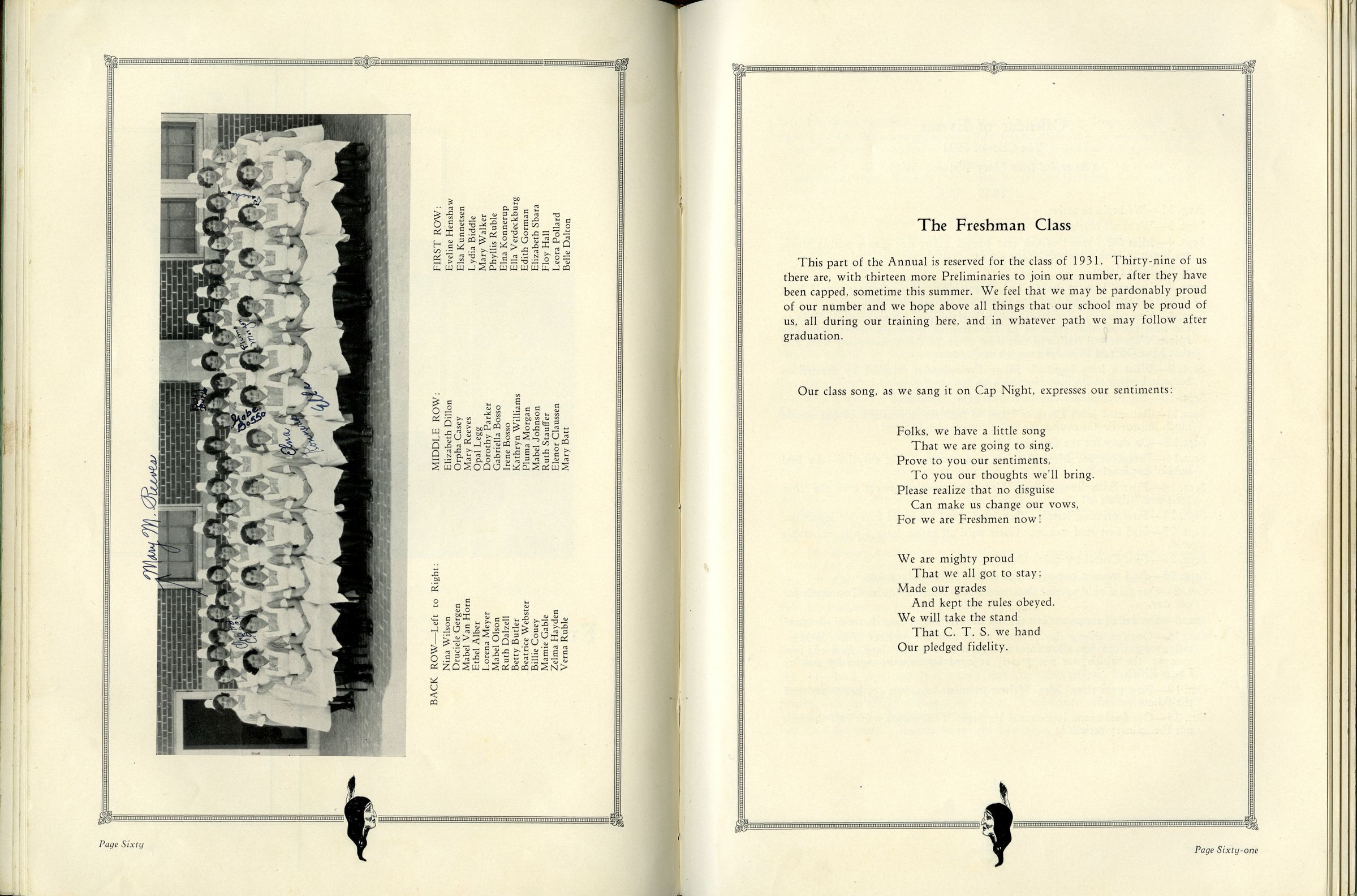 The annual was the second volume of "El Amigo", and served as a sort of yearbook for the students, faculty, and staff of the Colorado Training School for Nurses. The book's owner, longtime Broomfield resident Ella Mitze, started her nursing education at the school in 1929, the same year the book was printed. The book contains many types of information about the school, including: pictures, information, and poems about individual students and faculty; class information and pictures; information on different parts of Denver General Hospital, where nursing students worked; achievement lists; jokes; and several written comments and autographs from students.Collection