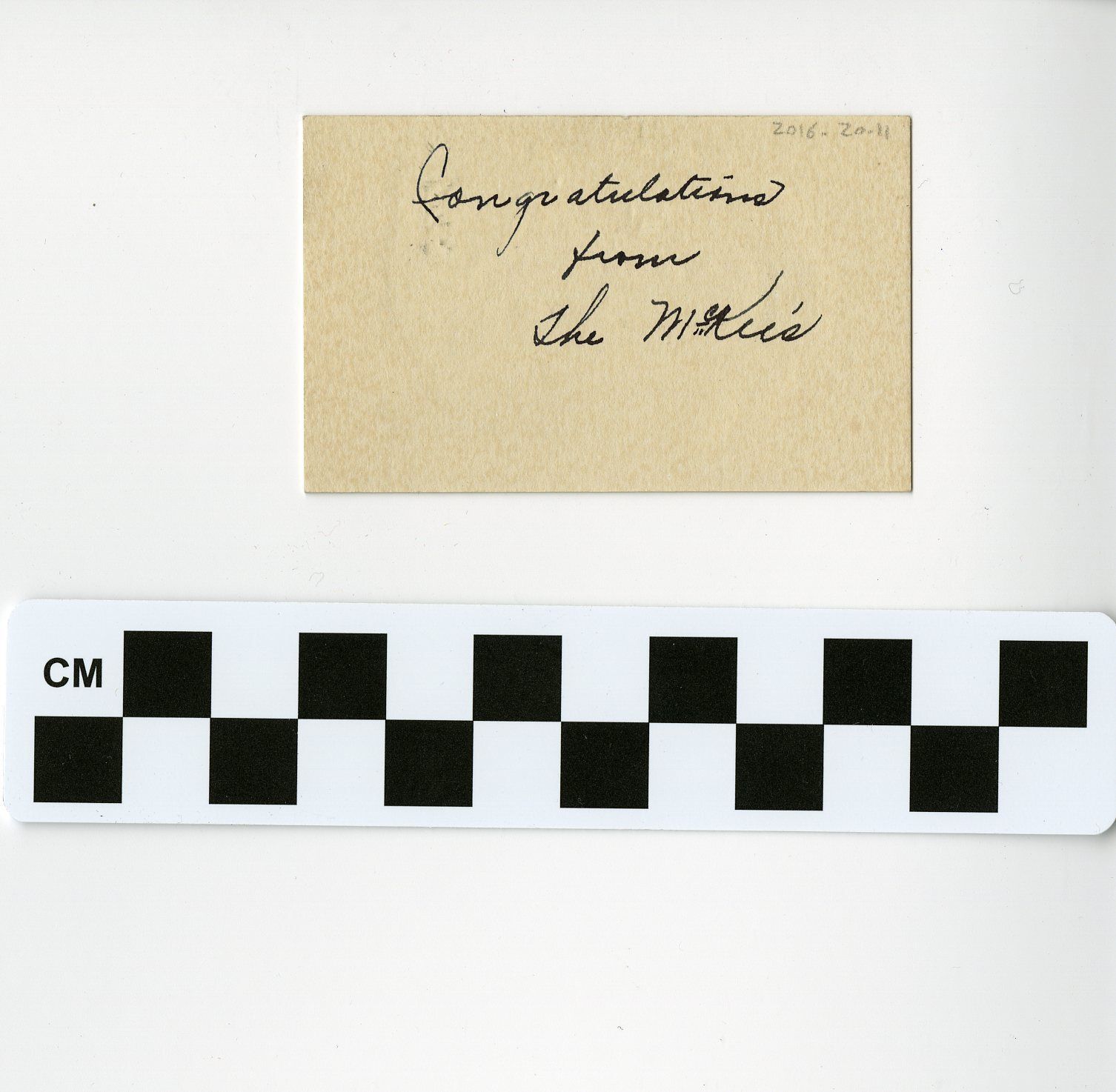 Gift Tag from the McKee Family to Ella Mitze Congratulating the Birth of Vic Thaete, with EnvelopeEntry/Object ID