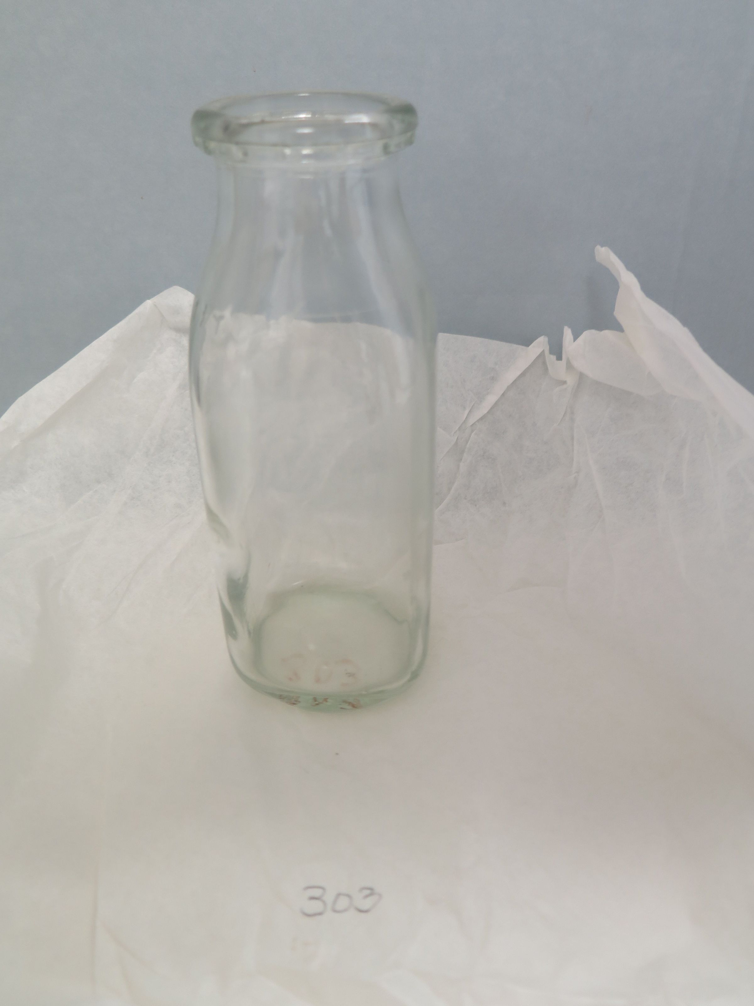 Side of milk bottle.: Origsize: 7.25" (h) x 2.5" (w); Origformat: Artifact