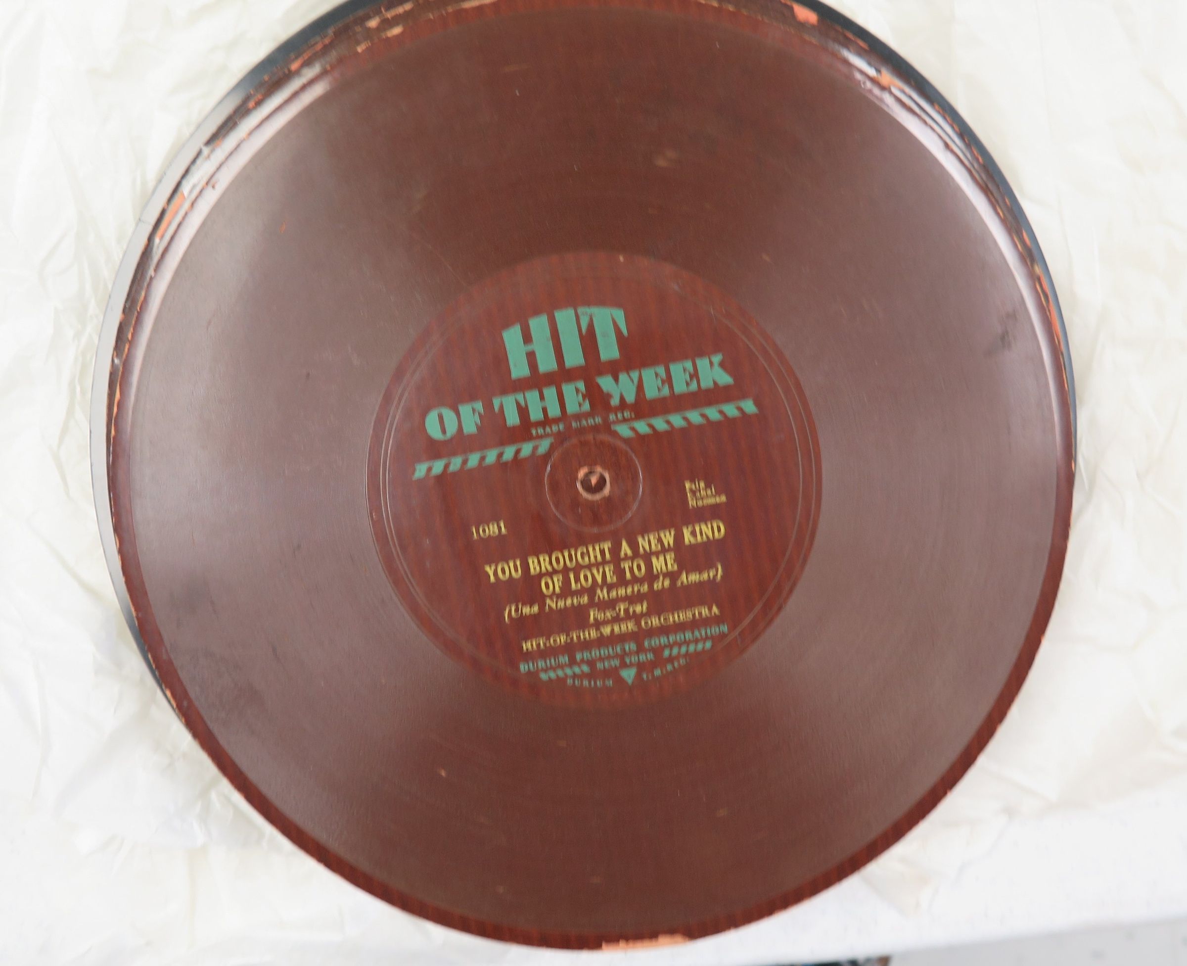 Record album 9.875"(Dia) featuring the Hit of the Week Orchestra's "You Brought and New Kind of Love to Me".