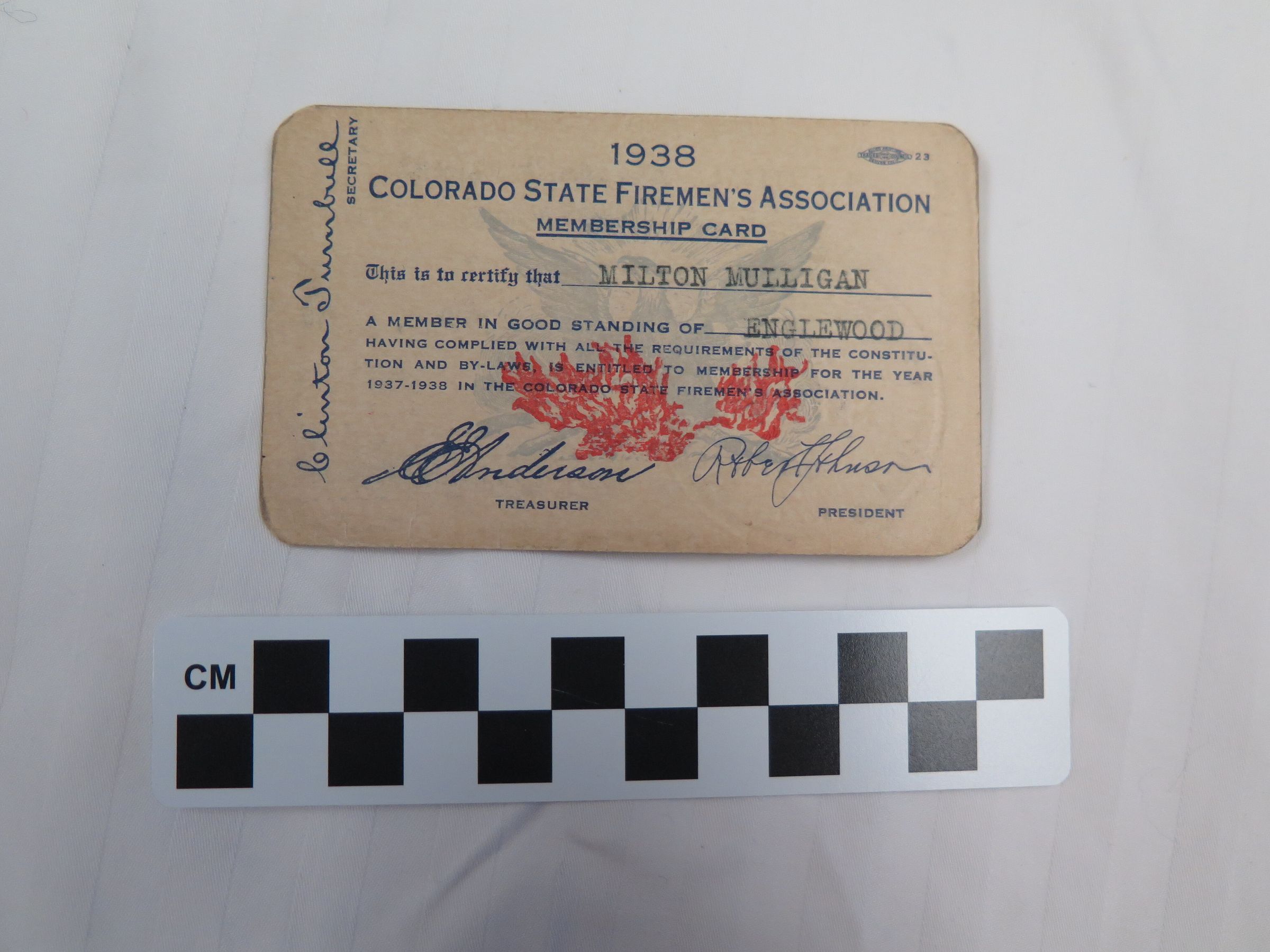 Milton Mulligan's Colorado State Firemen's Association Membership Card, 1938Entry/Object ID