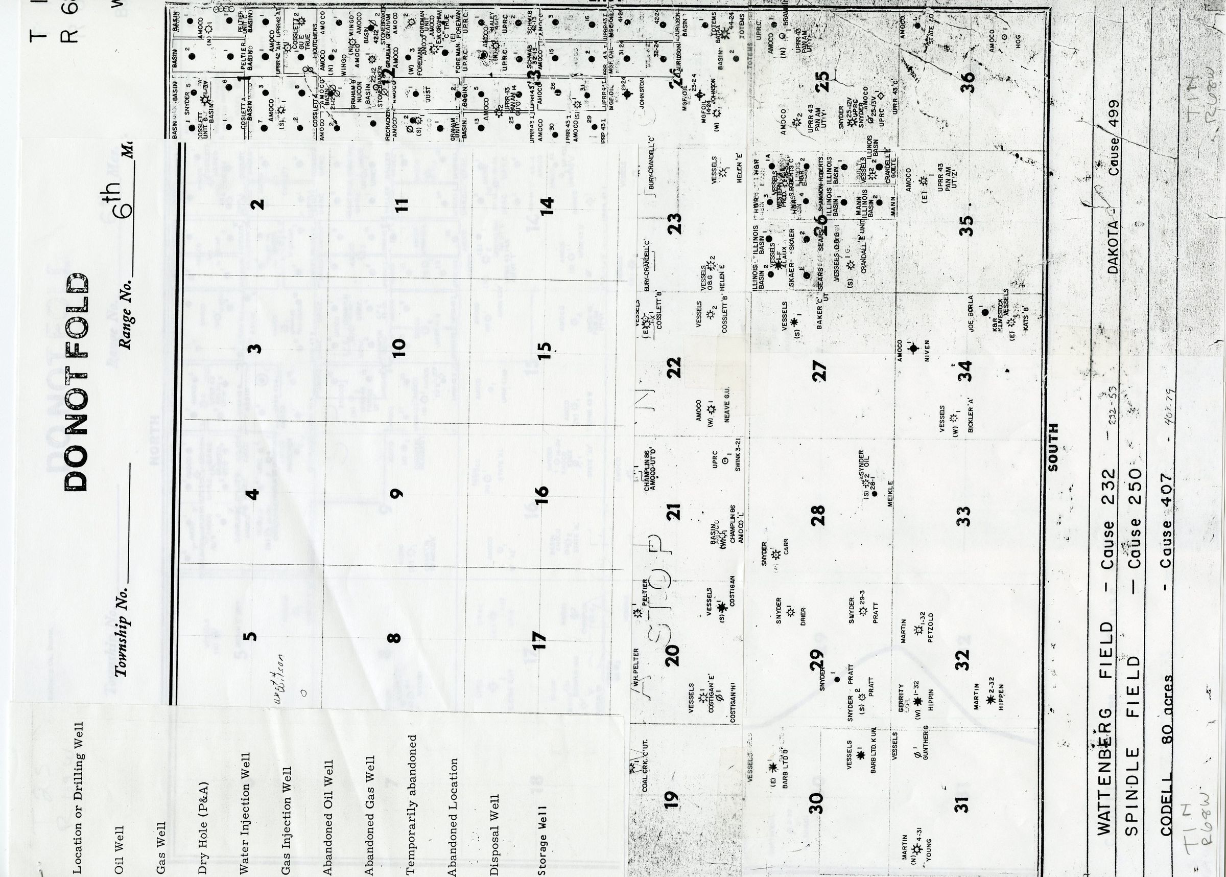 Packet containing maps of various oil wells. Includes a key. consists of three maps.
