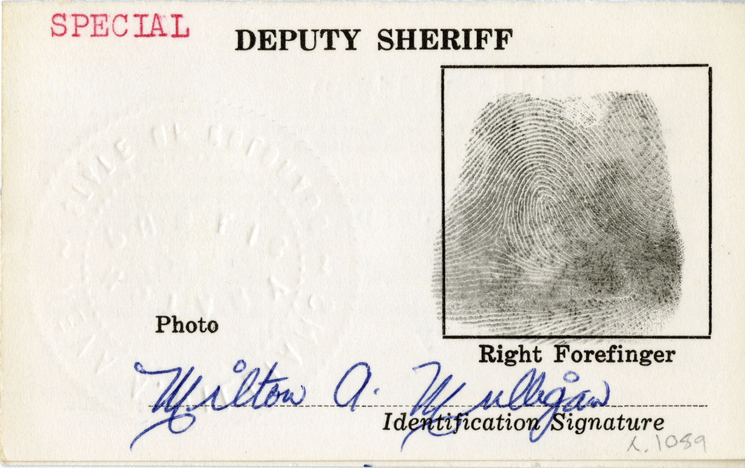 Milton Mulligan's Boulder County Deputy Sheriff's Card