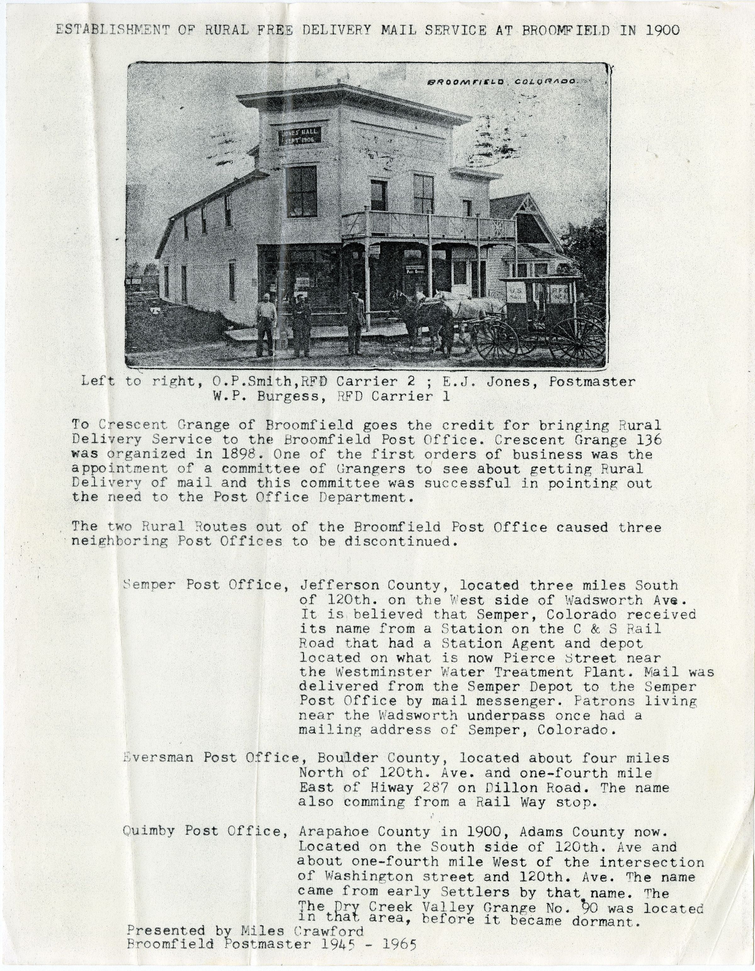 Related papers and photographs were originally owned by the Crawford family and later donated to the Broomfield Depot Museum in 2013. All material is part of the same archival and photographic collection. Also see accession 2013.4 for material related to the Crawford family.