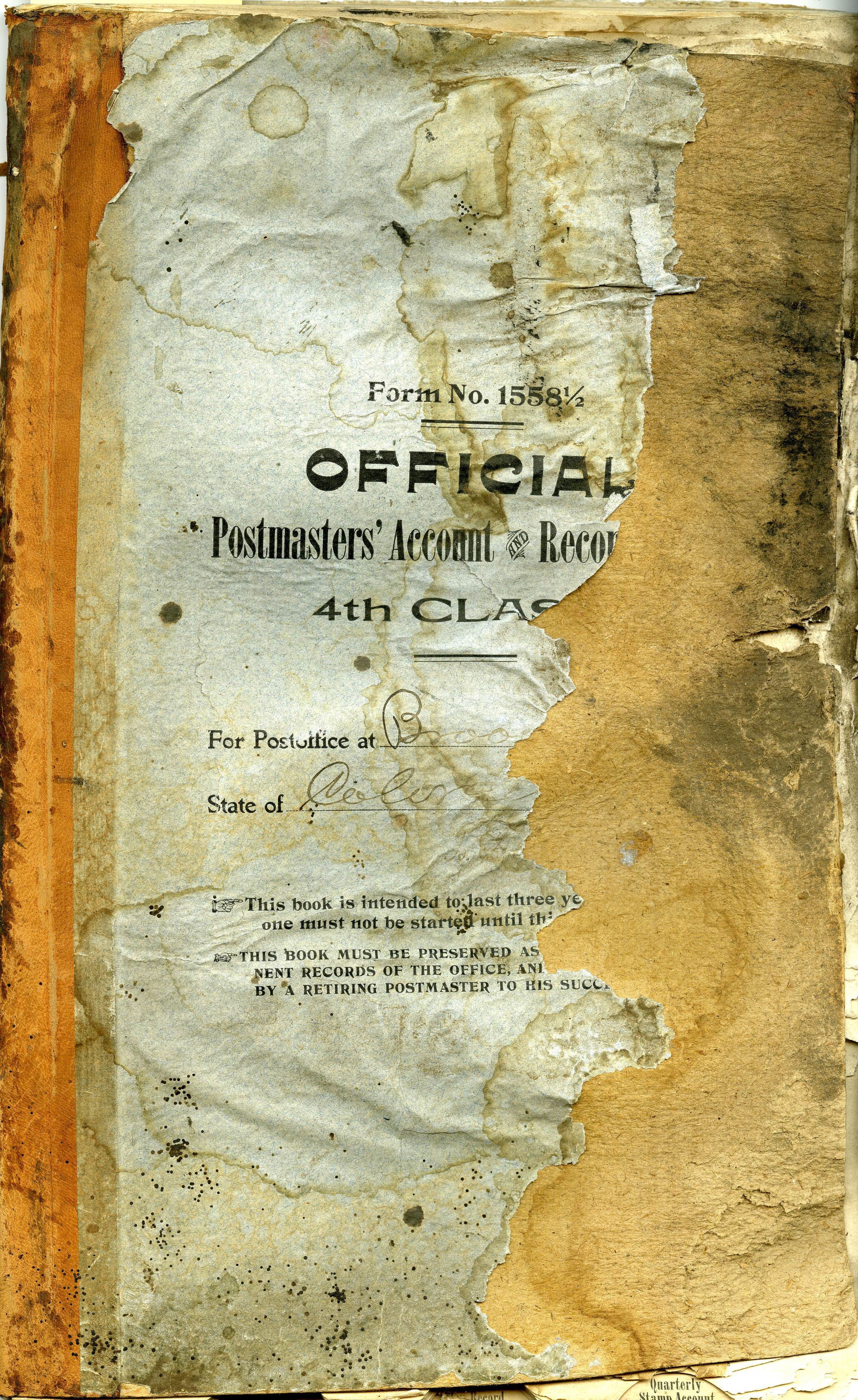 Official Broomfield Postmaster's Account & Record Book, June 1900-December 1903. The book is 8.5" x 12.5", with paper board covers and leather-covered string and adhesive binding. Contents of the book include: general accounting records; earnings records for stamps, postage, and envelopes; special delivery records; and US Treasury Department audit documentation. All records were created and recorded by Broomfield postmasters Florence A. Graves and Edgar J. Jones. Broomfield's post office is listed as "4th class," designating its size. The post office was considered part of Boulder County at the time of the records' creation.Collection