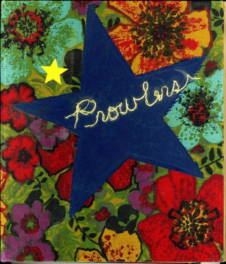 A scrapbook compiled by the Star Prowlers square dancing club of Broomfield, 1970-1976. The book is 12.5" x 13" x 3" when closed, with plastic ring binding. The cover is fabric hardcover with color floral design and yellow paper stars glued on the front and the spine. A large blue fabric star is glued on the front, with the word "Prowlers" spelled out with pieces of white yarn glued onto the star.