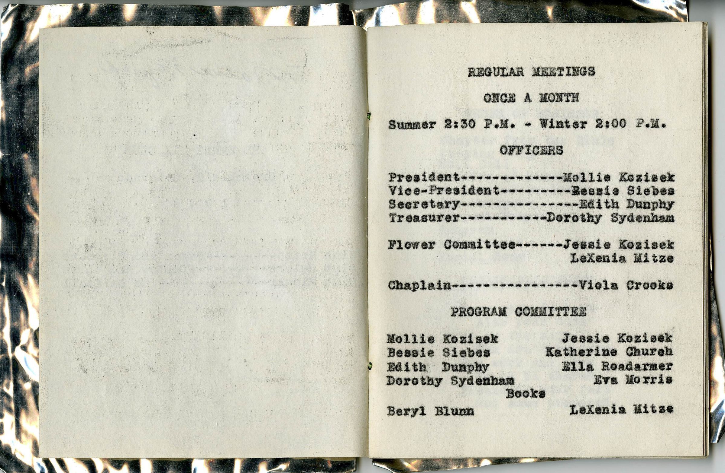 Admin or Biographical History: The Merri Mix Club served as a major social hub for many Broomfield women from 1923 into the 1970s. The main purpose of the club, as stated in its constitution preamble, was for "social pleasure, mental improvement, and mutual help...to form ourselves into a 'Woman's Club.'" Throughout much of its history, the club formed lasting friendships among many Broomfield women and families in the community. The club started off in 1923 with 28 charter members, mostly housewives. Officers consisting of a President, Vice-President, Secretary, and Treasurer were elected by members on a semi-annual basis. The cost for membership was 50 cents a year. Several women from early Broomfield families - including the Crooks, Koziseks, Vaughns, Crawfords, Mitzes, and Brunners - took membership and leadership positions. Longstanding members included: Viola Crooks; Edith Dunphy; Mae Billington; Jessie and Mollie Kozisek; Julia Vaughn; Emily Crawford; and Elizabeth Brunner, among several others. By 1973, the club had close to 150 different members spanning multiple generations throughout its lifetime. The club would typically meet once or twice a month at members' (designated "hostesses") homes to engage in various activities. Meetings would typically start with a call to order by the President, then an opening prayer or scripture reading, often led by the club's appointed Chaplain, Anna Crooks. Then, a roll call would ensue to track attendance, with a twist: each scheduled meeting had a theme for its roll call that members would prepare for ahead of time. Instead of simply calling out their names, members would say something in accordance with the theme. For example, some meetings required members to call out their favorite greeting or joke, or briefly discuss their views on a current event. The business portion of a meeting involved elections, installation of officers, and general discussions and decision making. Meetings would also include planned presentations (by members and guest speakers), poem readings, musical performances, group singing, the occasional luncheon or party, games, and debate. One interesting rule of the meetings was the prohibition of negativity in conversation; failure to comply would incur a fine. In all, meetings focused on uplifting attendees and allowing women to meaningfully engage with each other and the wider community. In 1973, the Merri Mix Club held its 50th - and last - anniversary celebration, documenting several years of activity. Several members or relatives of members were in attendance, showing the lasting influence and strong social bond of the Merri Mix women within the Broomfield community. Sources: Merri Mix Club Minutes, 1935-1944 (1994.27.18), Broomfield Train Depot Museum, Broomfield, Colorado. Merri Mix Club Minutes, 1945-1968 (1994.27.19), Broomfield Train Depot Museum, Broomfield, Colorado. Merri Mix Club Notebook of History (1994.27.1), Broomfield Train Depot Museum, Broomfield, Colorado. Pettem, Silvia. Broomfield: Changes Through Time. Longmont: The Book Lode, 2001, pp. 126-128. Custodial History: Program and several other papers of the same collection donated to the Broomfield Depot Museum in 1994 by Helen Kozisek. She and other women in her family were all members of the Merri Mix Club.
