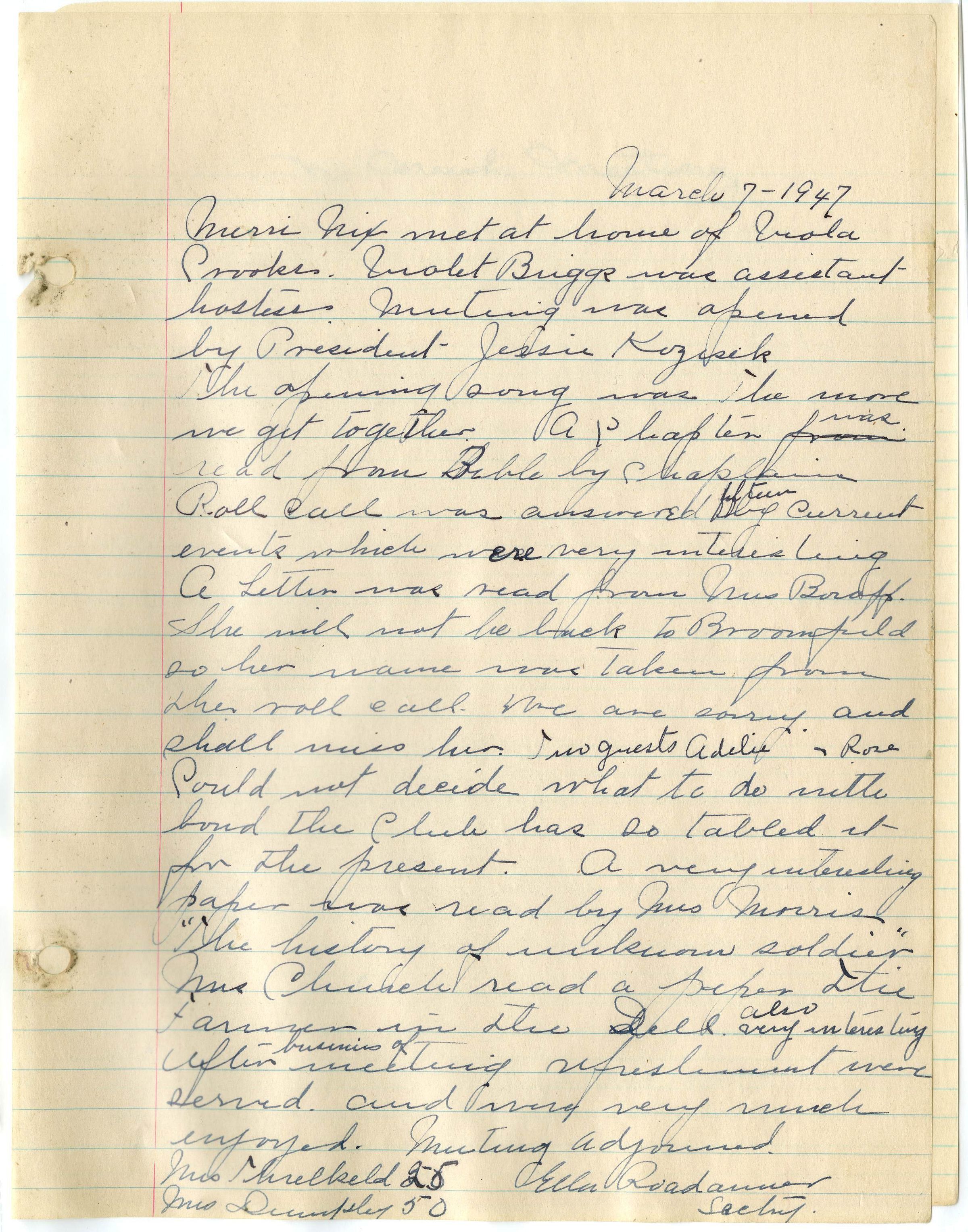 Merri Mix Club Minutes, 1935-1944 (1994.27.18), Broomfield Train Depot Museum, Broomfield, Colorado.