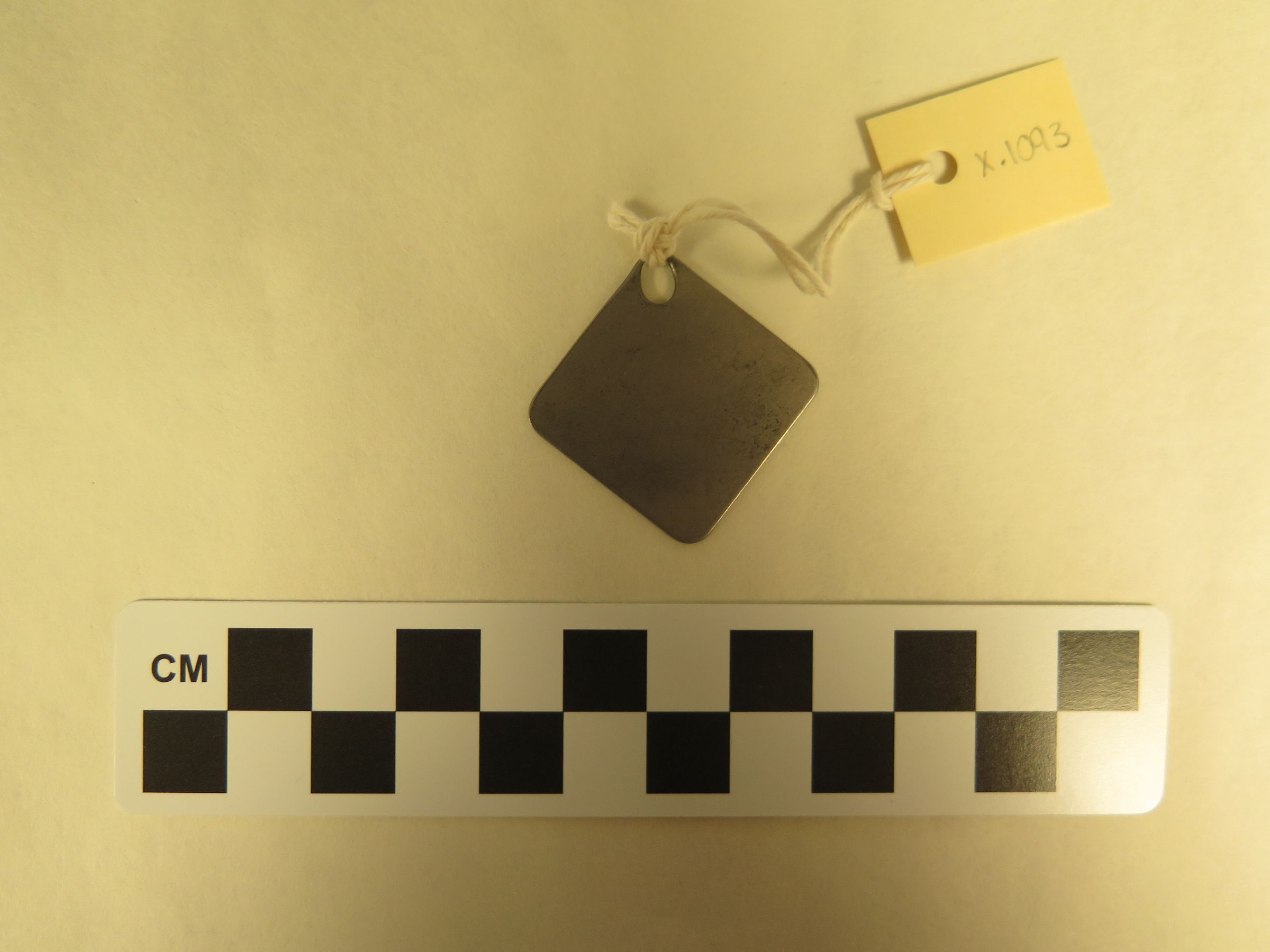 Front of tag.: Origsize: 1.5" (w) x 1.5" (l); Origformat: Artifact