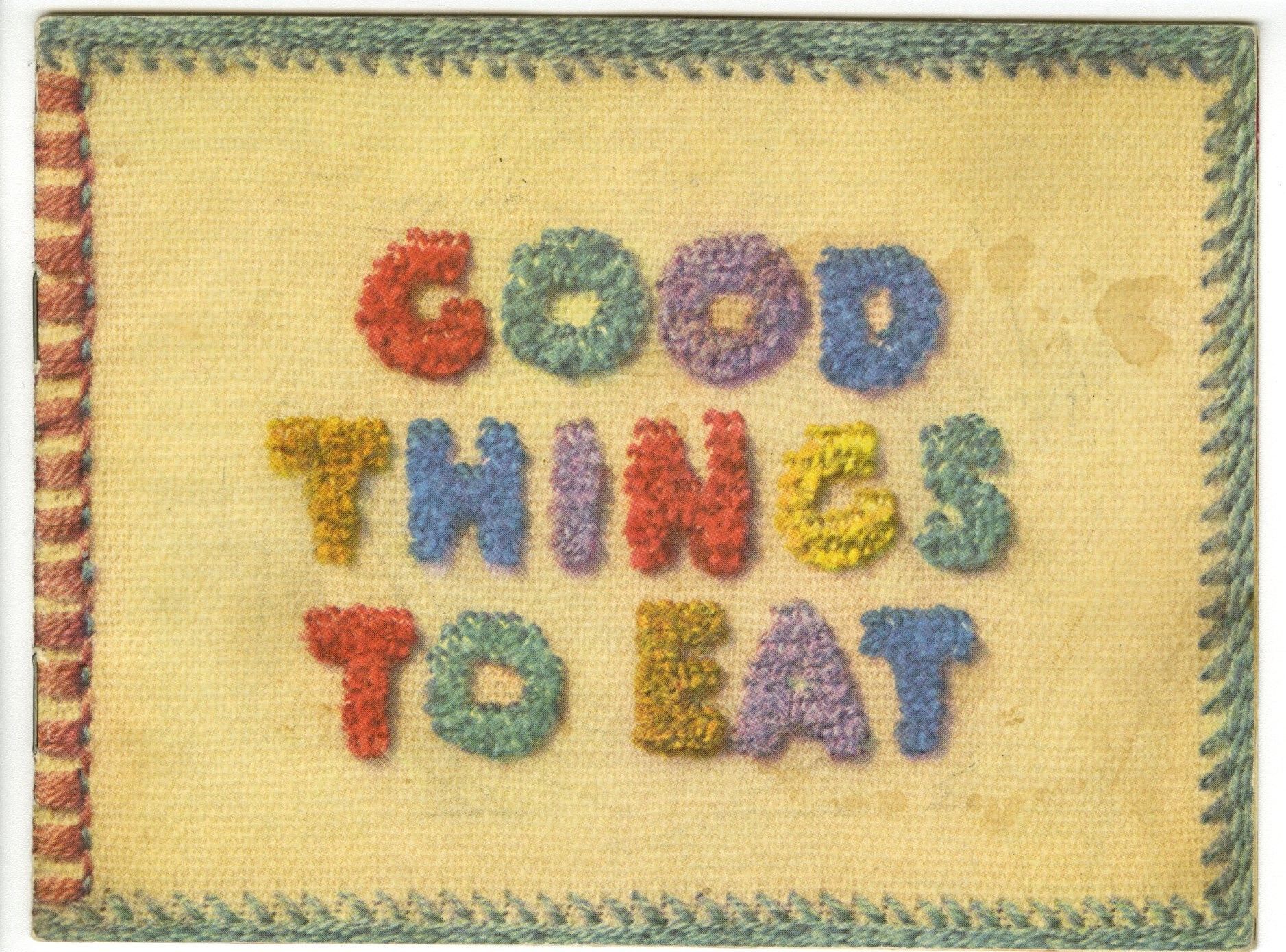 This is a mini cookbook titled "Good Things to Eat". Dimensions are 4.5" H X 6" W.