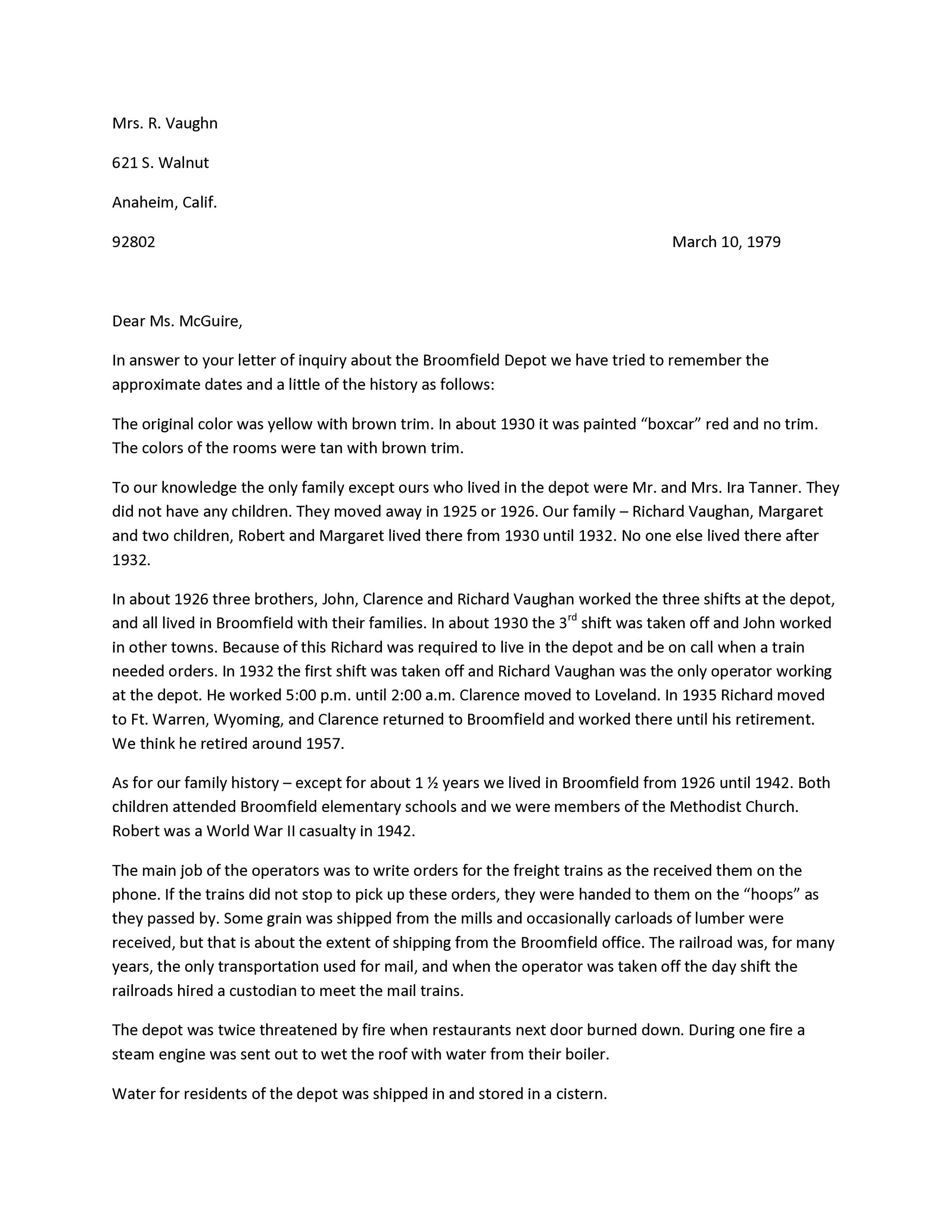 letter, 3 pages, describing depot life there and the family.